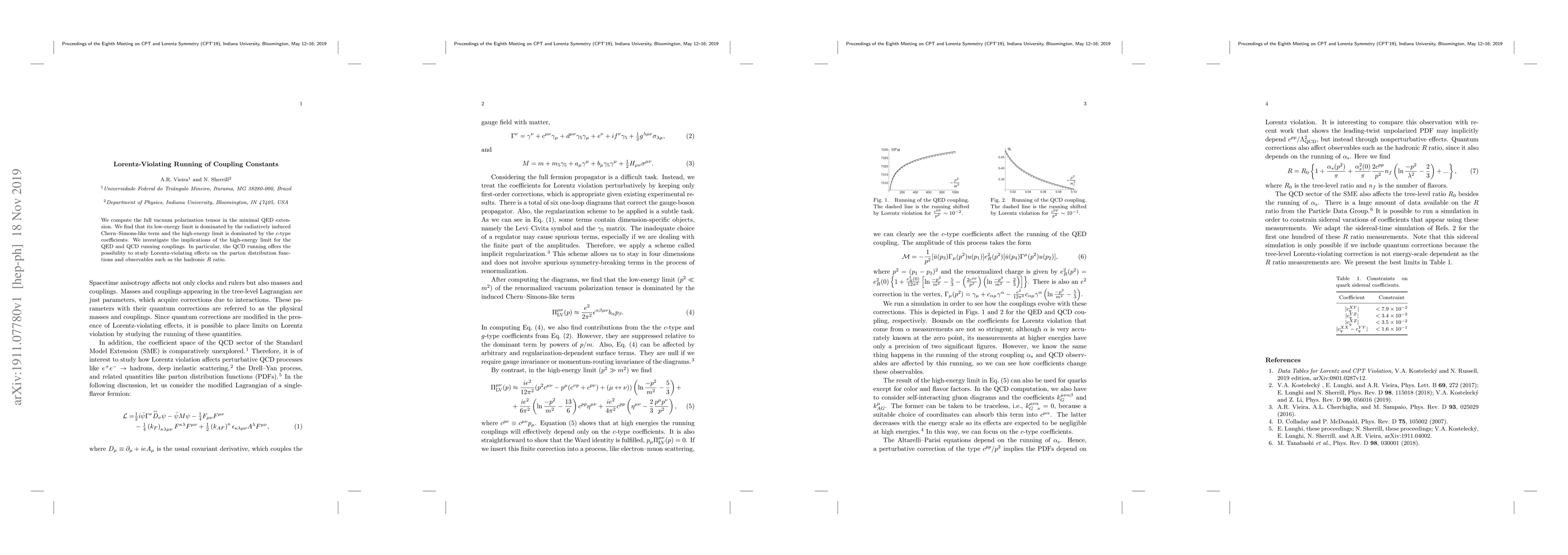 This paper computes the vacuum polarization tensor in the minimal QED extension, revealing that low-energy limits are dominated by a Chern-Simons-like term while high-energy limits are influenced by c-type coefficients. It explores the implications for QED and QCD running couplings, particularly focusing on Lorentz-violating effects on QCD parton distribution functions and the hadronic R ratio.