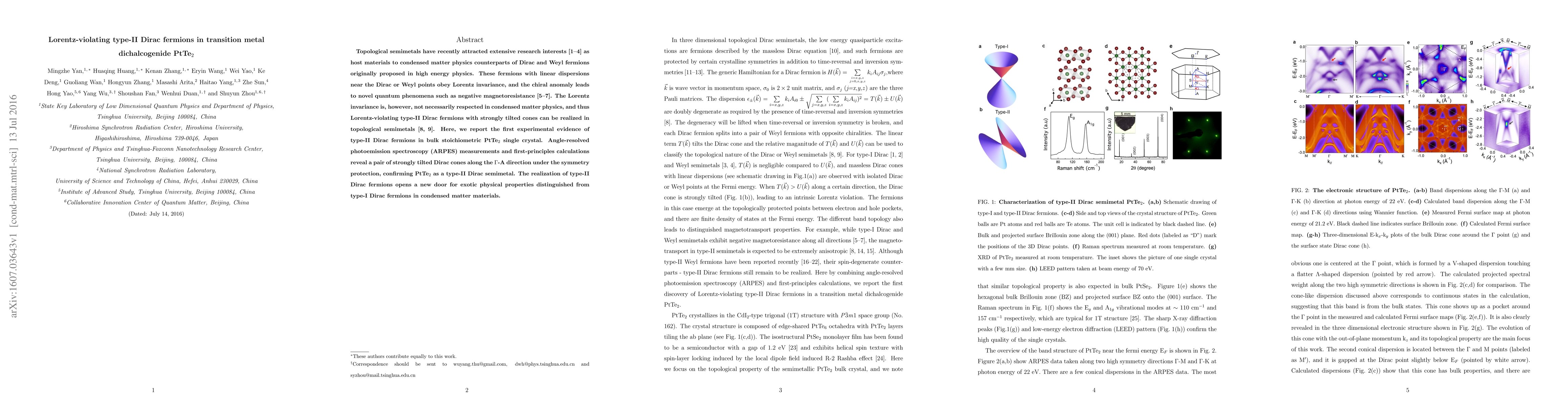 This paper reports the first experimental evidence of Lorentz-violating type-II Dirac fermions in PtTe$_2$, identified through ARPES and first-principles calculations, revealing strongly tilted Dirac cones in this topological semimetal. This discovery suggests new exotic physical properties beyond typical type-I Dirac fermions.