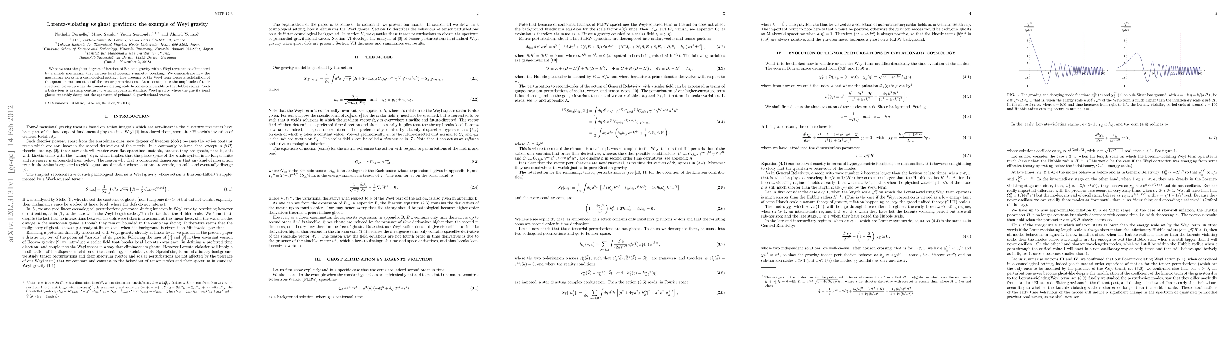 We show that the ghost degrees of freedom of Einstein gravity with a Weyl term can be eliminated by a simple mechanism that invokes local Lorentz symmetry breaking. We demonstrate how the mechanism works in a cosmological setting. The presence of the Weyl term forces a redefinition of the quantum vacuum state of the tensor perturbations. As a consequence the amplitude of their spectrum blows up when the Lorentz-violating scale becomes comparable to the Hubble radius. Such a behaviour is in sharp contrast to what happens in standard Weyl gravity where the gravitational ghosts smoothly damp out the spectrum of primordial gravitational waves.