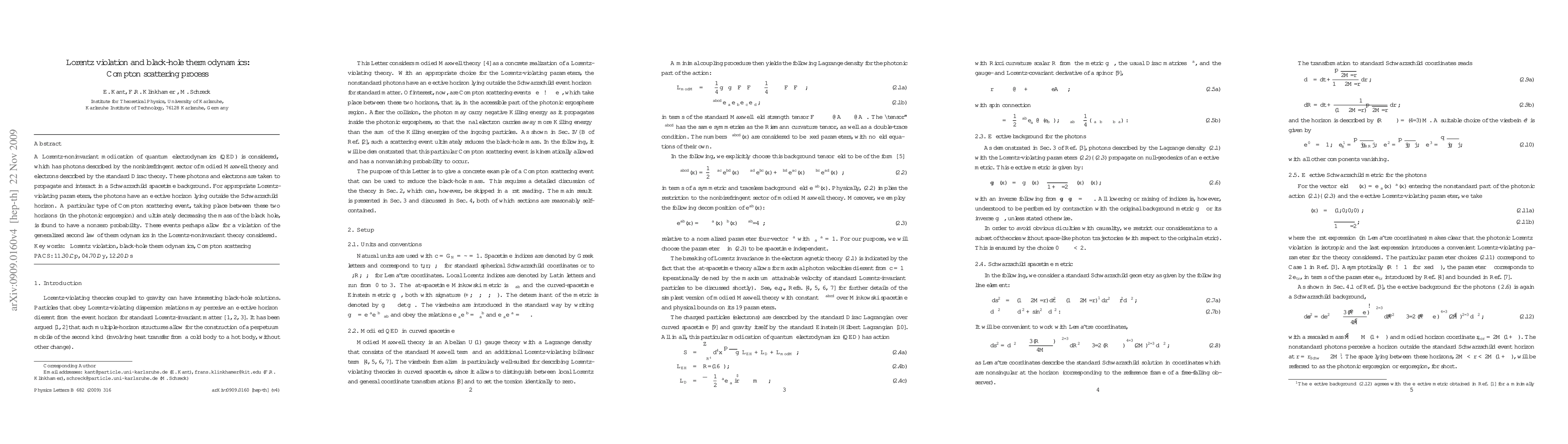 A new theory of quantum electrodynamics with Lorentz violation shows that Compton scattering events outside a black hole's horizon can decrease its mass, potentially violating the second law of thermodynamics.