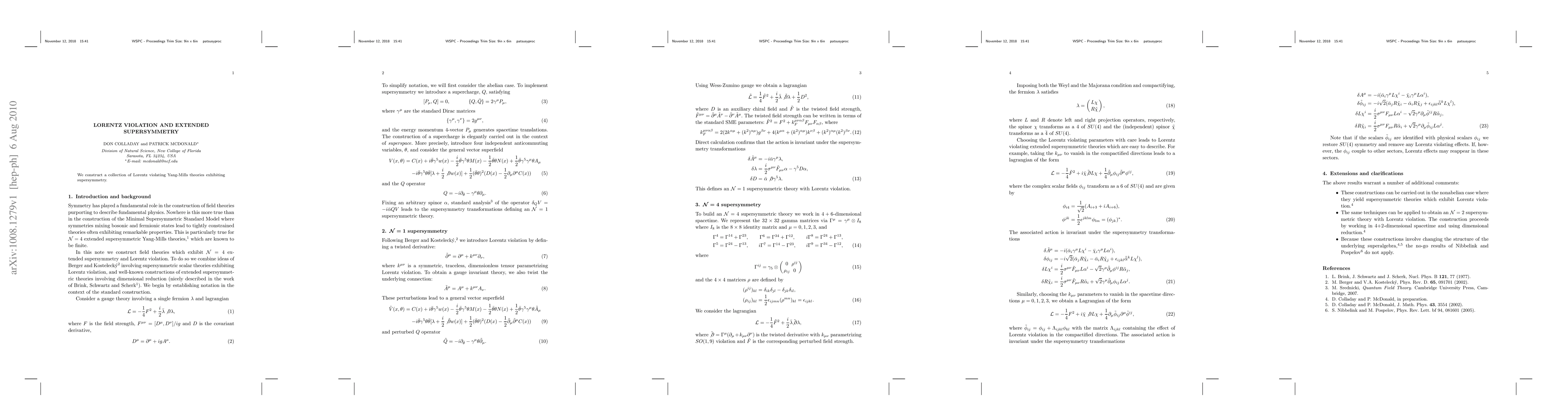 We construct a collection of Lorentz violating Yang-Mills theories exhibiting supersymmetry.