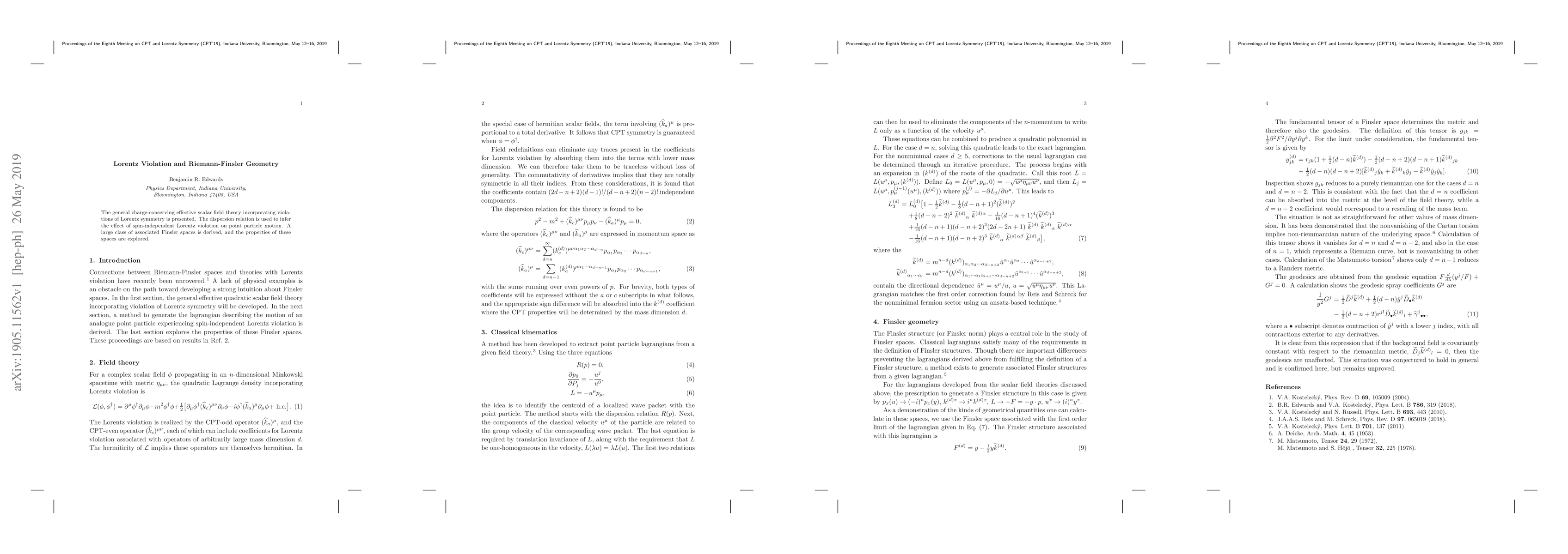 The general charge-conserving effective scalar field theory incorporating violations of Lorentz symmetry is presented. The dispersion relation is used to infer the effects of spin-independent Lorentz violation on point-particle motion. A large class of associated Finsler spaces is derived, and the properties of these spaces is explored.