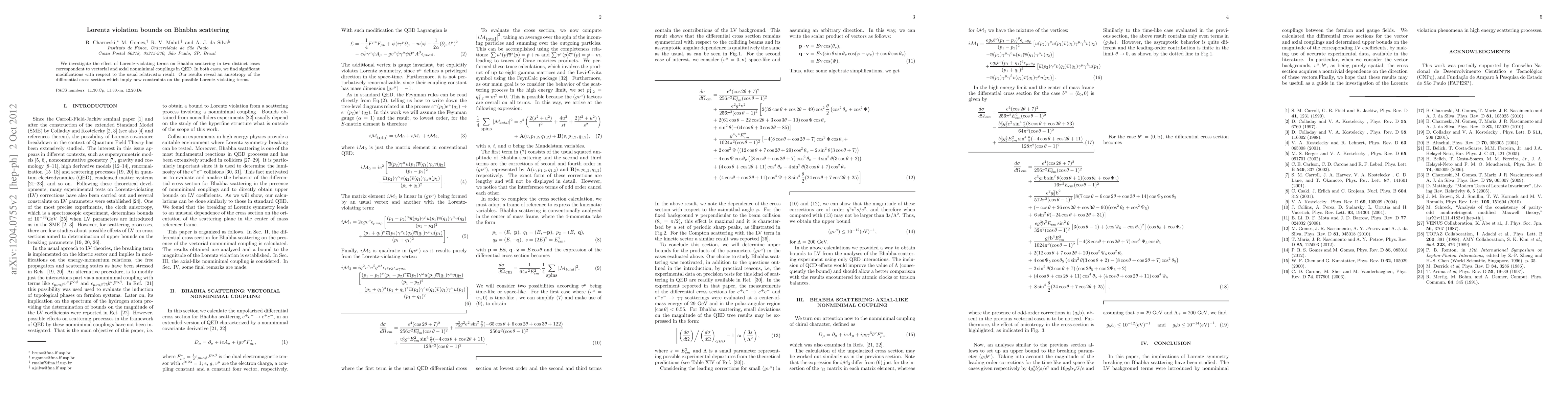 We investigate the effect of Lorentz-violating terms on Bhabha scattering in two distinct cases correspondent to vectorial and axial nonminimal couplings in QED. In both cases, we find significant modifications with respect to the usual relativistic result. Our results reveal an anisotropy of the differential cross section which imply new constraints on the possible Lorentz violating terms.