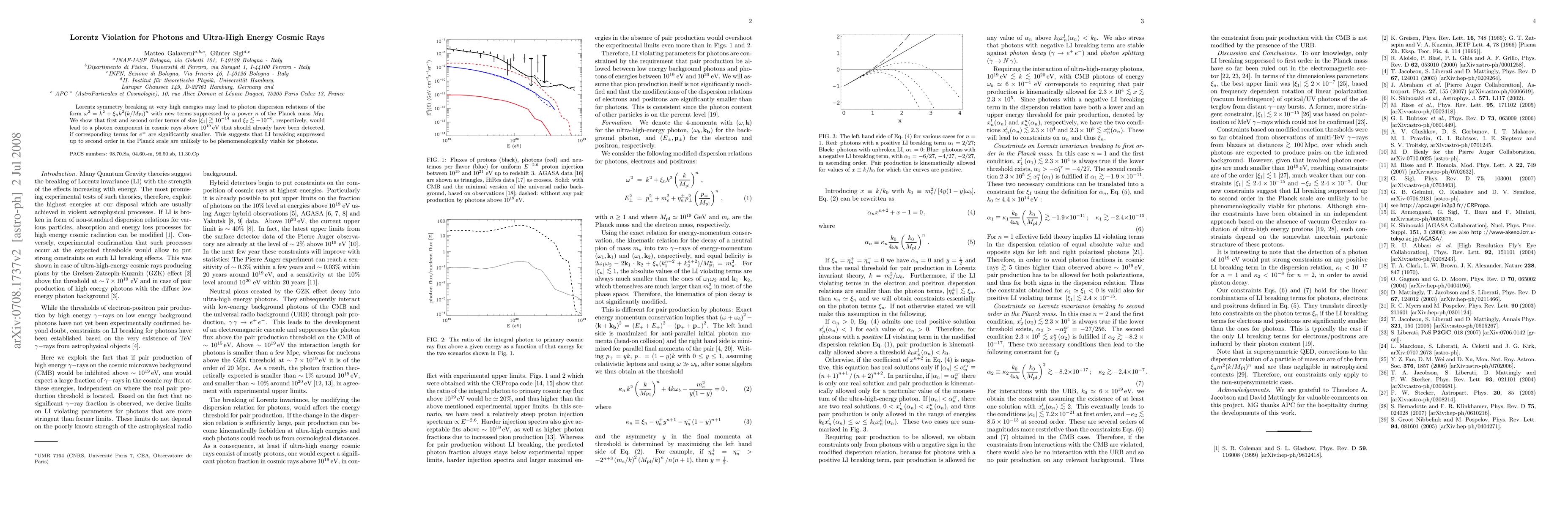 High-energy cosmic rays may indicate a break in Lorentz symmetry, with photon dispersion relations deviating from expected values, suggesting that such deviations are unlikely to explain observed phenomena.
