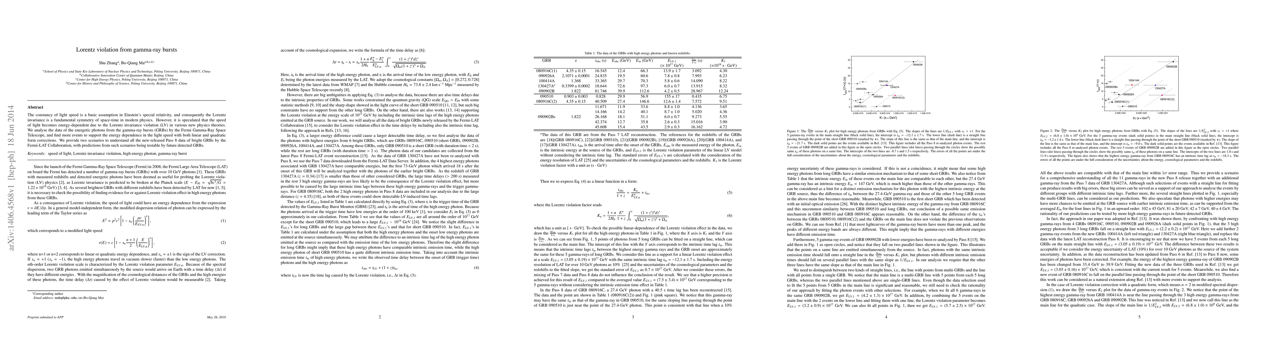 This paper investigates potential Lorentz invariance violation (LV) by analyzing gamma-ray burst (GRB) data from the Fermi Gamma-Ray Space Telescope, finding evidence for energy-dependent light speed. It proposes two scenarios to explain the observed data, with predictions that can be tested by future GRB observations.