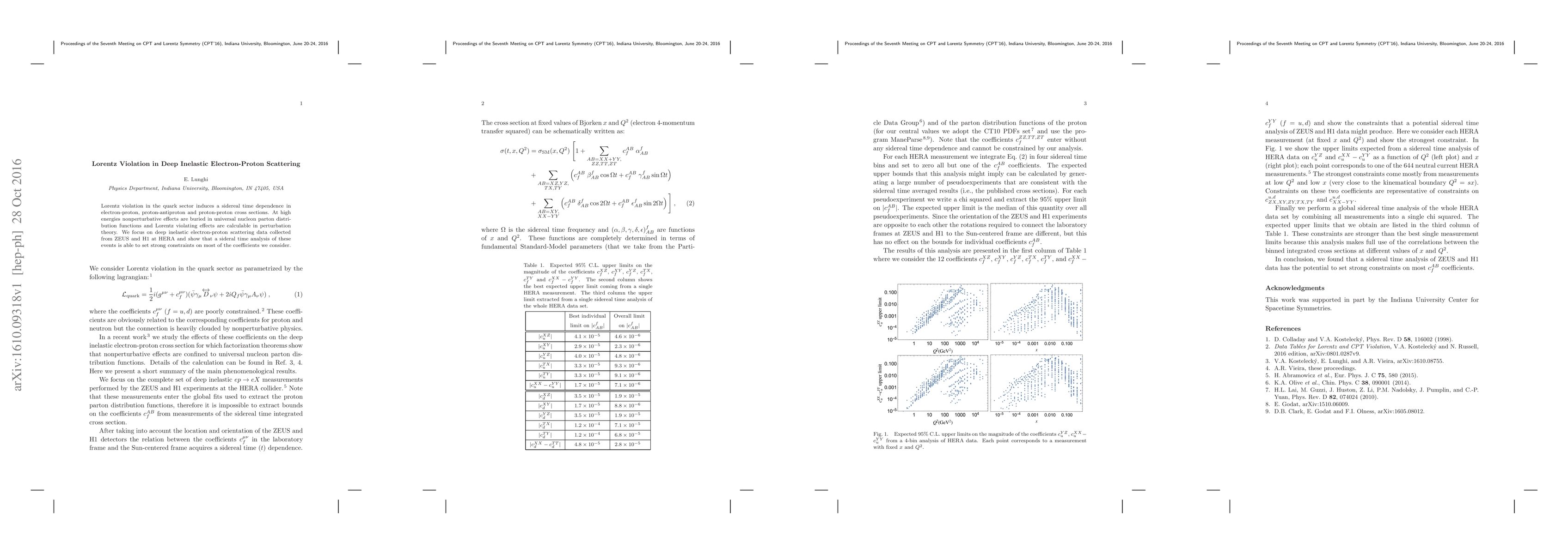 This paper investigates Lorentz violation in the quark sector through deep inelastic electron-proton scattering, demonstrating that sidereal time dependence can be observed in scattering cross sections. Analysis of data from ZEUS and H1 at HERA sets stringent constraints on the coefficients associated with Lorentz violation.