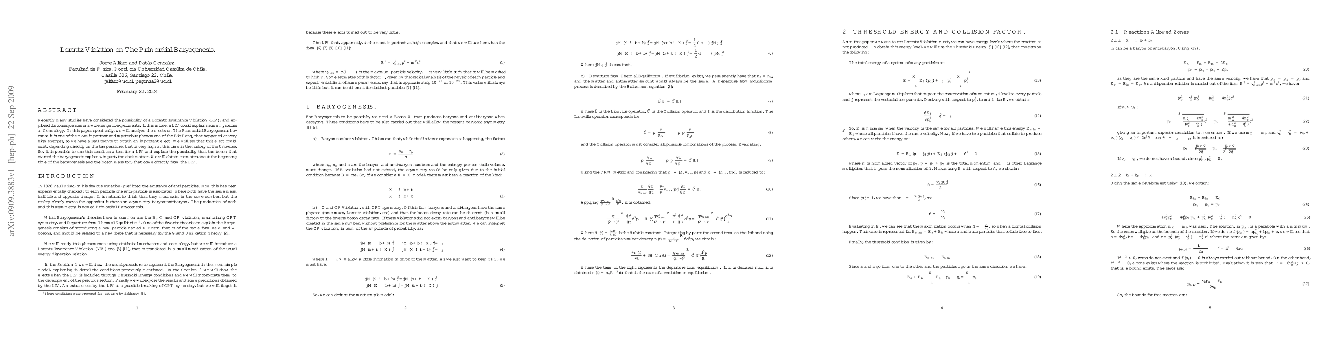 This paper investigates the potential effects of Lorentz Invariance Violation (LIV) on primordial baryogenesis, a crucial yet mysterious phenomenon from the Big Bang occurring at high energies. The study suggests that LIV could provide explanations for cosmological mysteries and estimates the beginning time and mass of the boson involved, potentially linking it to dark matter.