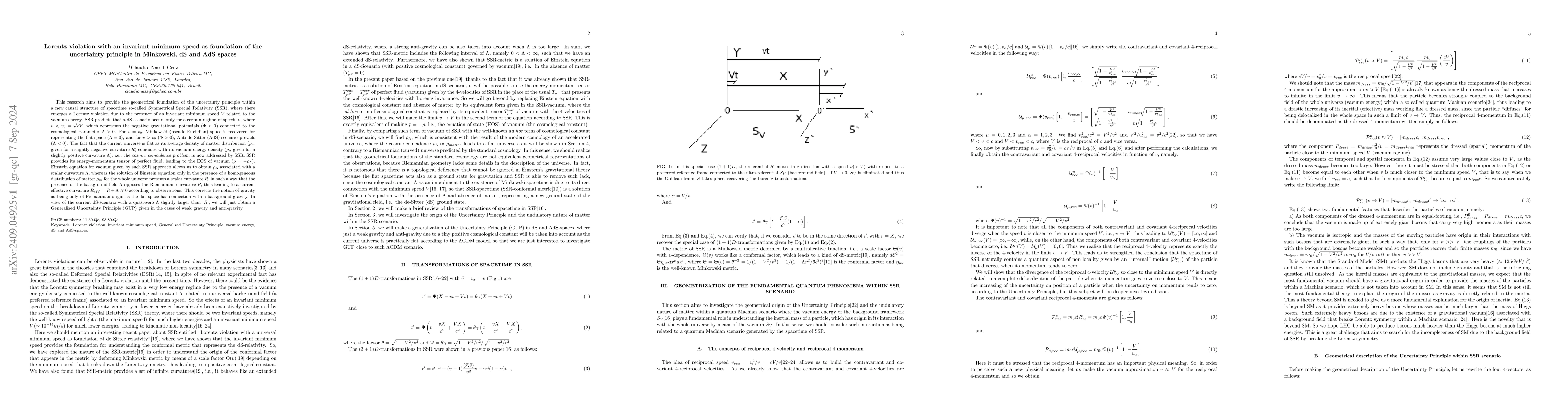 presence of an invariant minimum speed $V$ related to the vacuum energy. SSR
