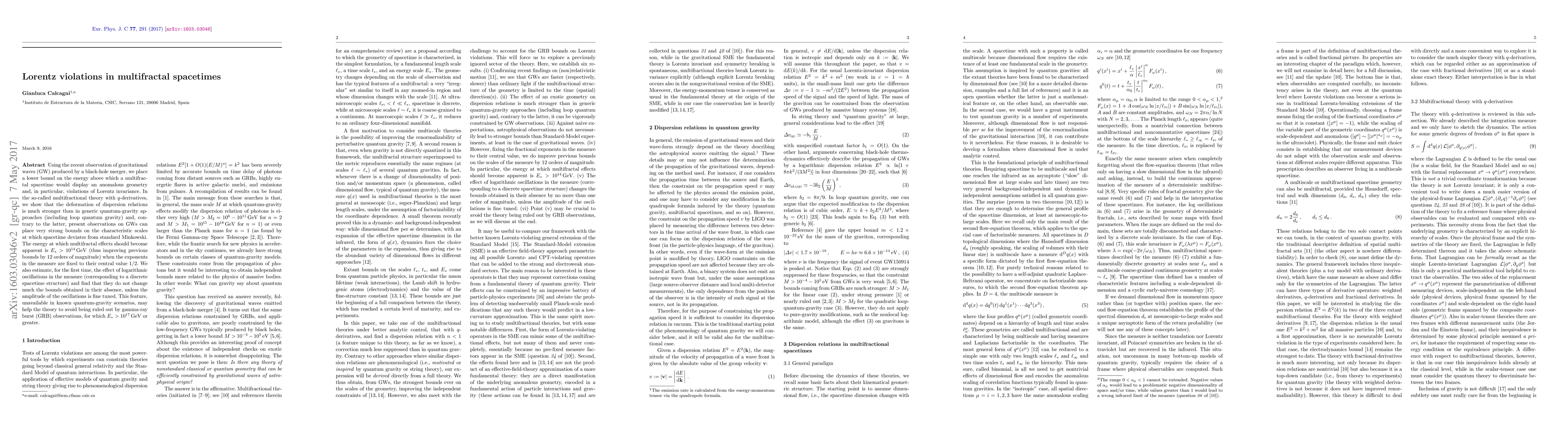 Using the recent observation of gravitational waves (GW) produced by a black-hole merger, we place a lower bound on the energy above which a multifractal spacetime would display an anomalous geometry and, in particular, violations of Lorentz invariance. In the so-called multifractional theory with $q$-derivatives, we show that the deformation of dispersion relations is much stronger than in generic quantum-gravity approaches (including loop quantum gravity) and, contrary to the latter, present observations on GWs can place very strong bounds on the characteristic scales at which spacetime deviates from standard Minkowski. The energy at which multifractal effects should become apparent is $E_*>10^{14}\,{\rm GeV}$ (thus improving previous bounds by 12 orders of magnitude) when the exponents in the measure are fixed to their central value $1/2$. We also estimate, for the first time, the effect of logarithmic oscillations in the measure (corresponding to a discrete spacetime structure) and find that they do not change much the bounds obtained in their absence, unless the amplitude of the oscillations is fine tuned. This feature, unavailable in known quantum-gravity scenarios, may help the theory to avoid being ruled out by gamma-ray burst (GRB) observations, for which $E_*> 10^{17}\,{\rm GeV}$ or greater.
