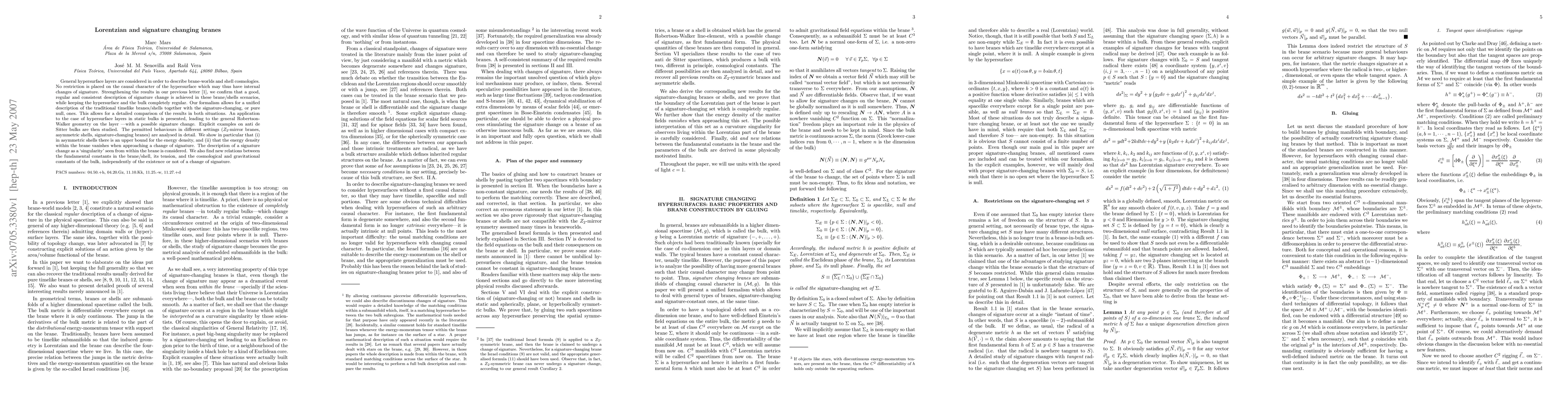 General hypersurface layers are considered in order to describe brane-worlds and shell cosmologies. No restriction is placed on the causal character of the hypersurface which may thus have internal changes of signature. Strengthening the results in our previous letter [1], we confirm that a good, regular and consistent description of signature change is achieved in these brane/shells scenarios, while keeping the hypersurface and the bulk completely regular. Our formalism allows for a unified description of the traditional timelike branes/shells together with the signature-changing, or pure null, ones. This allows for a detailed comparison of the results in both situations. An application to the case of hypersurface layers in static bulks is presented, leading to the general Robertson-Walker geometry on the layer --with a possible signature change. Explicit examples on anti de Sitter bulks are then studied. The permitted behaviours in different settings ($Z_{2}$-mirror branes, asymmetric shells, signature-changing branes) are analysed in detail. We show in particular that (i) in asymmetric shells there is an upper bound for the energy density, and (ii) that the energy density within the brane vanishes when approaching a change of signature. The description of a signature change as a `singularity' seen from within the brane is considered. We also find new relations between the fundamental constants in the brane/shell, its tension, and the cosmological and gravitational constants of the bulk, independently of the existence or not of a change of signature.