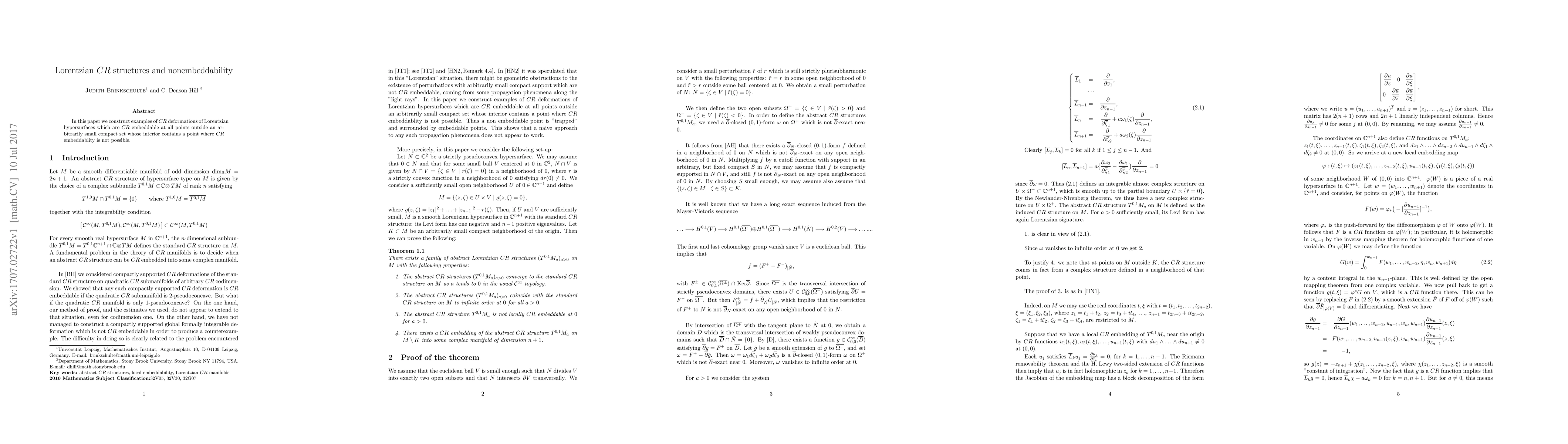 Summary: This paper provides examples of $CR$ deformations of Lorentzian hypersurfaces that remain $CR$ embeddable except at a specific point within a small compact set, demonstrating the phenomenon of nonembeddability.
