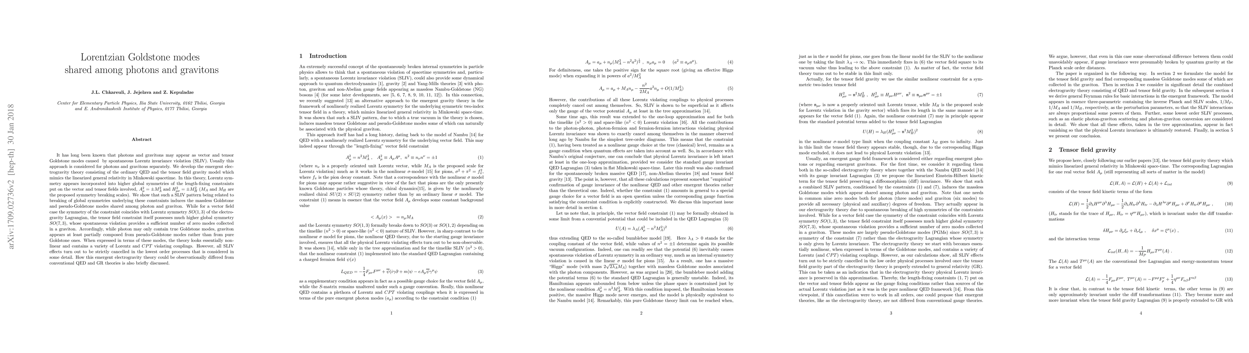 This paper develops an emergent electrogravity theory that unifies QED and linearized general relativity, showing that Lorentz symmetry violation can induce shared massless Goldstone and pseudo-Goldstone modes for both photons and gravitons. The theory reveals that while photons are composed of true Goldstone modes, gravitons contain pseudo-Goldstone modes, and despite nonlinearities, spontaneous Lorentz symmetry violations are canceled in lowest-order processes.
