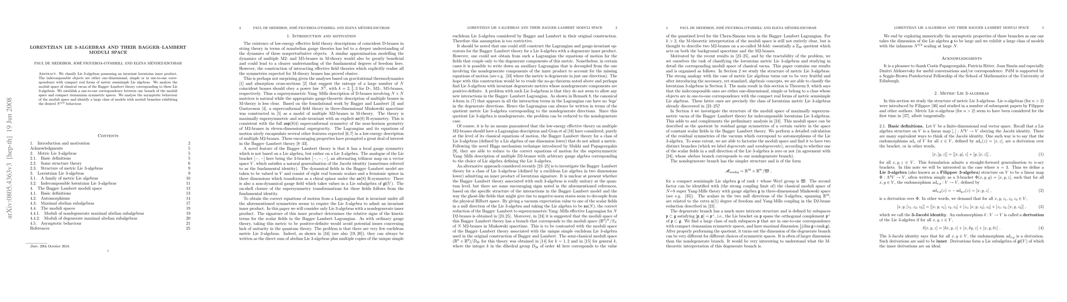 This paper classifies Lie 3-algebras with invariant lorentzian inner products, establishing a one-to-one correspondence between these algebras and compact real forms of metric semisimple Lie algebras, which is further linked to moduli spaces in the Bagger-Lambert theory.