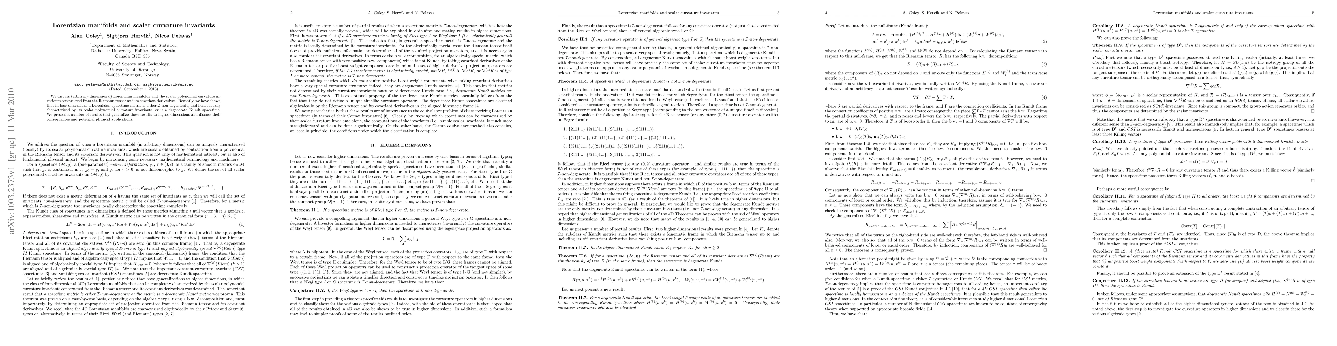 We discuss (arbitrary-dimensional) Lorentzian manifolds and the scalar polynomial curvature invariants constructed from the Riemann tensor and its covariant derivatives. Recently, we have shown that in four dimensions a Lorentzian spacetime metric is either $\mathcal{I}$-non-degenerate, and hence locally characterized by its scalar polynomial curvature invariants, or is a degenerate Kundt spacetime. We present a number of results that generalize these results to higher dimensions and discuss their consequences and potential physical applications.