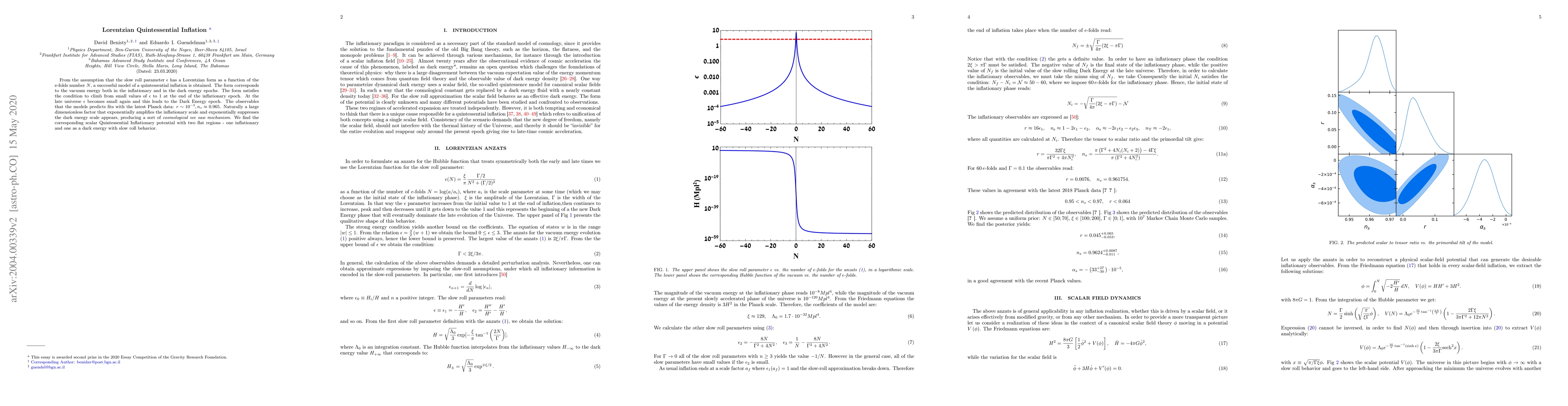 This paper proposes a model of quintessential inflation where the slow roll parameter epsilon has a Lorentzian form, leading to a cosmological see-saw mechanism that produces a scalar potential with two flat regions: one for inflation and one for dark energy.