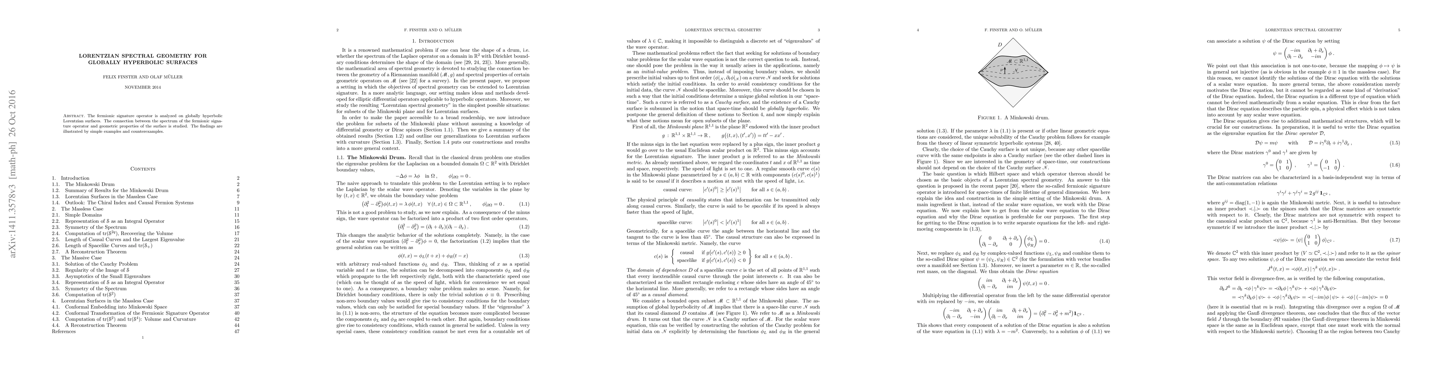 The fermionic signature operator is analyzed on globally hyperbolic Lorentzian surfaces. The connection between the spectrum of the fermionic signature operator and geometric properties of the surface is studied. The findings are illustrated by simple examples and counterexamples.