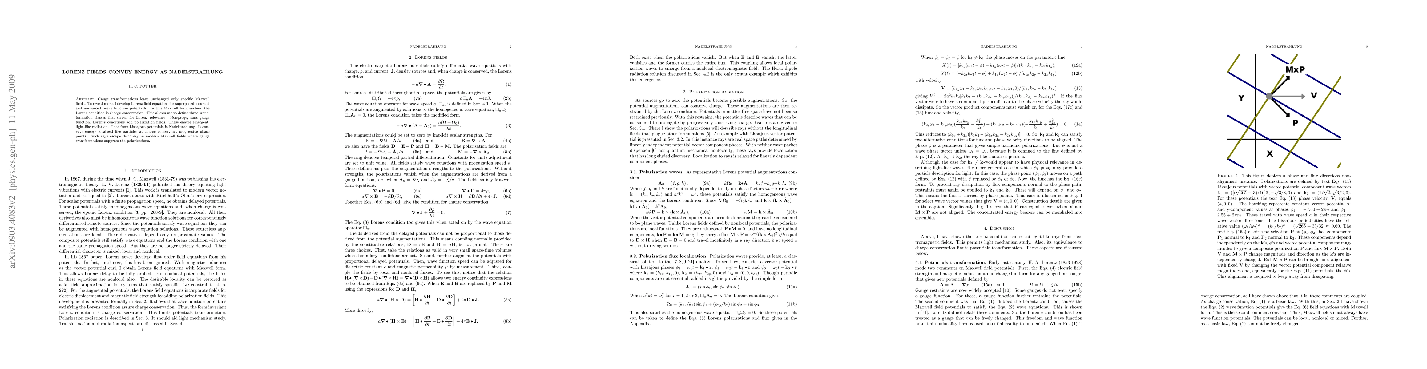 Gauge transformations leave only specific Maxwell fields unchanged. To reveal more, I develop Lorenz field equations for superposed, sourced and unsourced, wave function potentials. In this Maxwell form system, the Lorenz condition is charge conservation. This allows me to define three transformation classes that screen for Lorenz relevance. Nongauge, sans gauge function, Lorentz conditions add polarization fields. These enable emergent, light-like radiation. That from Lissajous potentials is Nadelstrahlung. It conveys energy localized like particles at charge conserving, progressive phase points. Such rays escape discovery in modern Maxwell fields where gauge transformations suppress the polarizations.