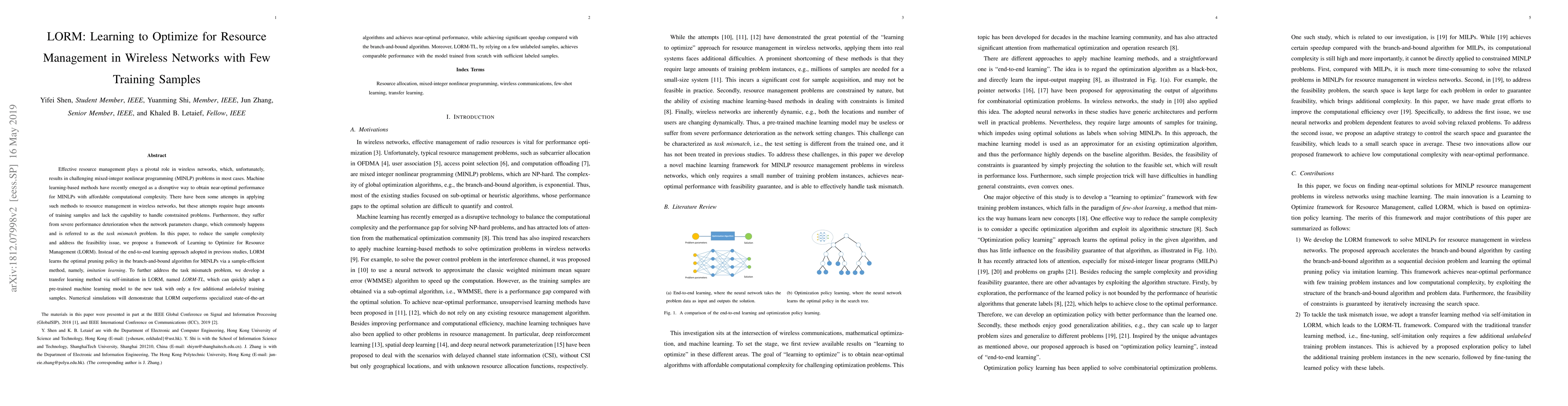 This paper proposes LORM, a framework for optimizing resource management in wireless networks using a sample-efficient imitation learning method to address the high sample complexity and task mismatch issues. LORM-TL, an extension of LORM, employs self-imitation to quickly adapt to new tasks with minimal additional unlabeled samples, achieving near-optimal performance and significant speedups.