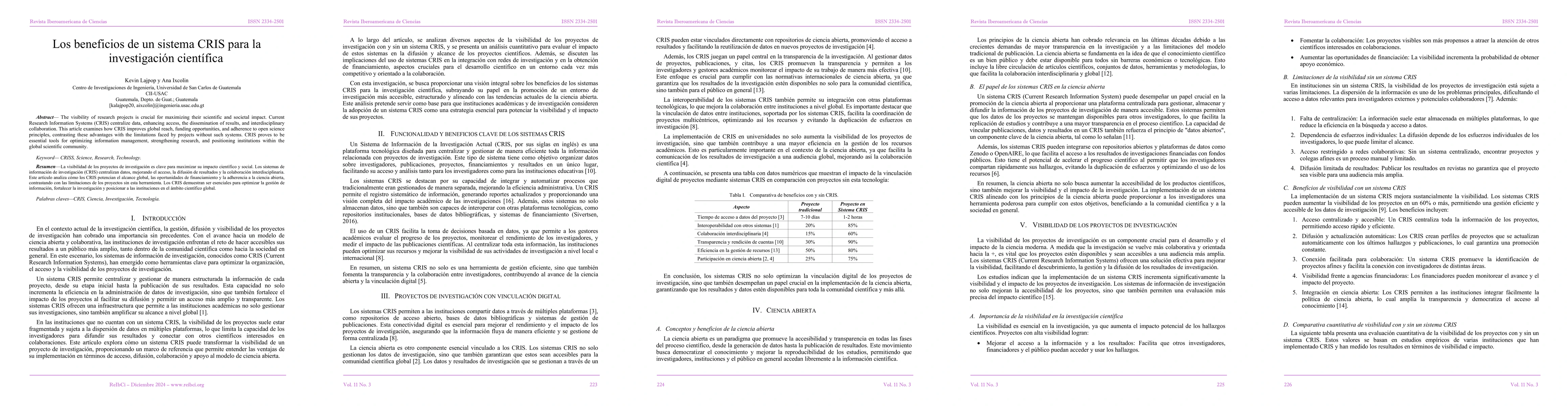 The paper presents a comprehensive analysis of CRIS systems' functionalities and benefits, emphasizing their role in enhancing research project visibility, interoperability, and open science adherence.