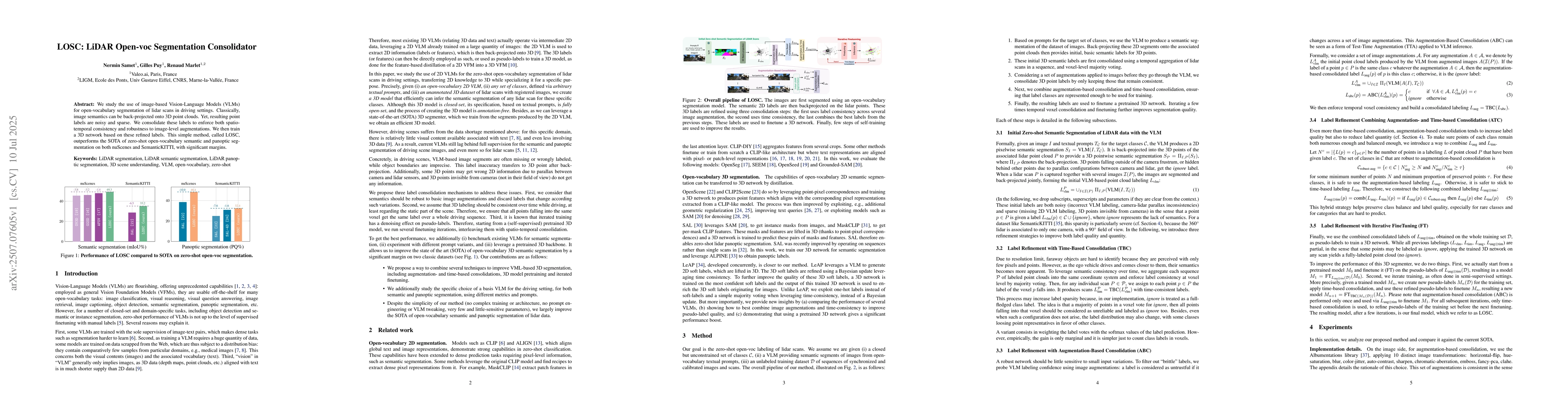 We study the use of image-based Vision-Language Models (VLMs) for open-vocabulary segmentation of lidar scans in driving settings. Classically, image semantics can be back-projected onto 3D point clouds. Yet, resulting point labels are noisy and sparse. We consolidate these labels to enforce both spatio-temporal consistency and robustness to image-level augmentations. We then train a 3D network based on these refined labels. This simple method, called LOSC, outperforms the SOTA of zero-shot open-vocabulary semantic and panoptic segmentation on both nuScenes and SemanticKITTI, with significant margins.