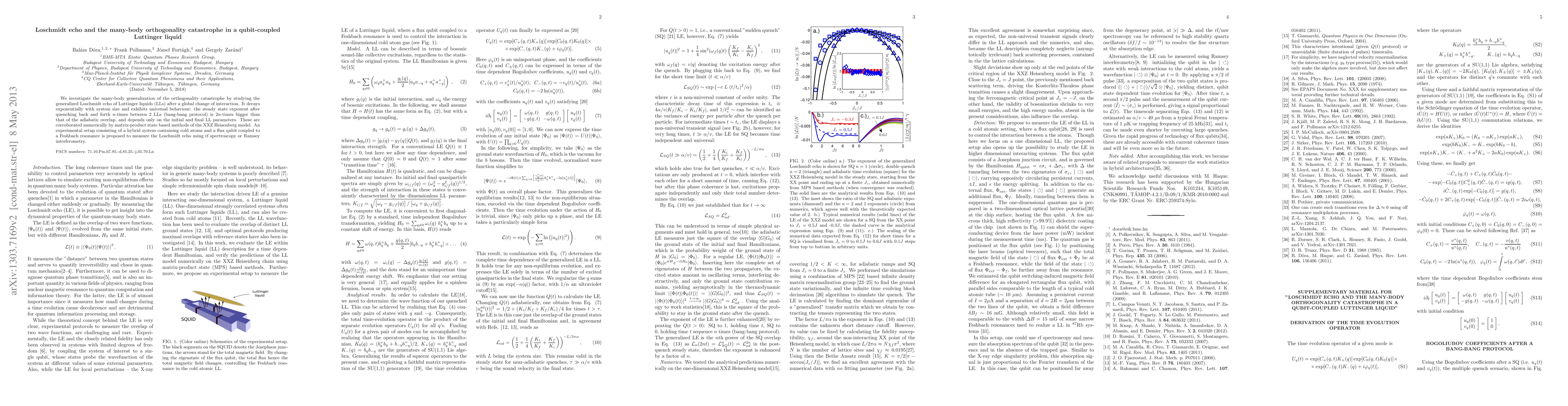 This paper explores the many-body orthogonality catastrophe in qubit-coupled Luttinger liquids, showing that the generalized Loschmidt echo decays exponentially with system size and exhibits universal behavior dependent on initial and final LL parameters. Numerical simulations and a proposed experimental setup using cold atoms and flux qubits aim to measure these effects.