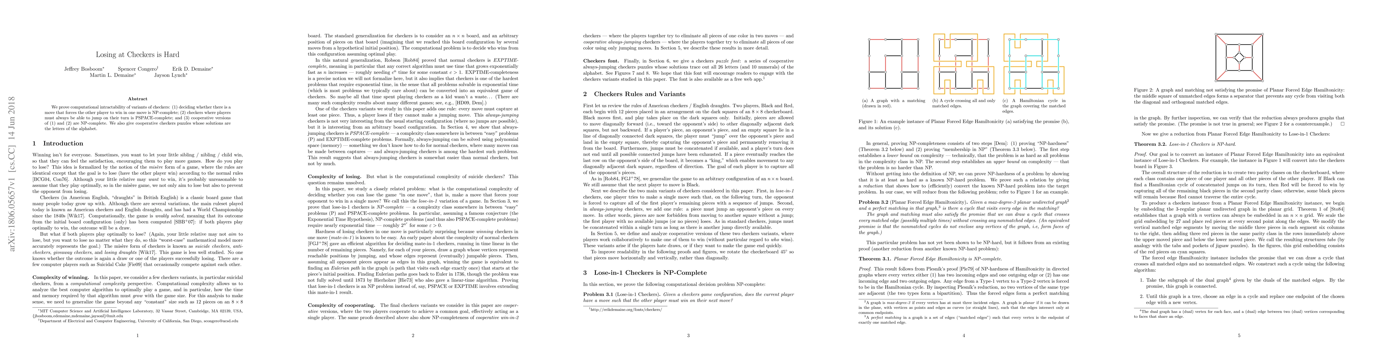 Researchers proved that certain variants of checkers, including whether a player can force a win in one move, are computationally hard to solve; the findings have implications for puzzle creation and problem-solving.