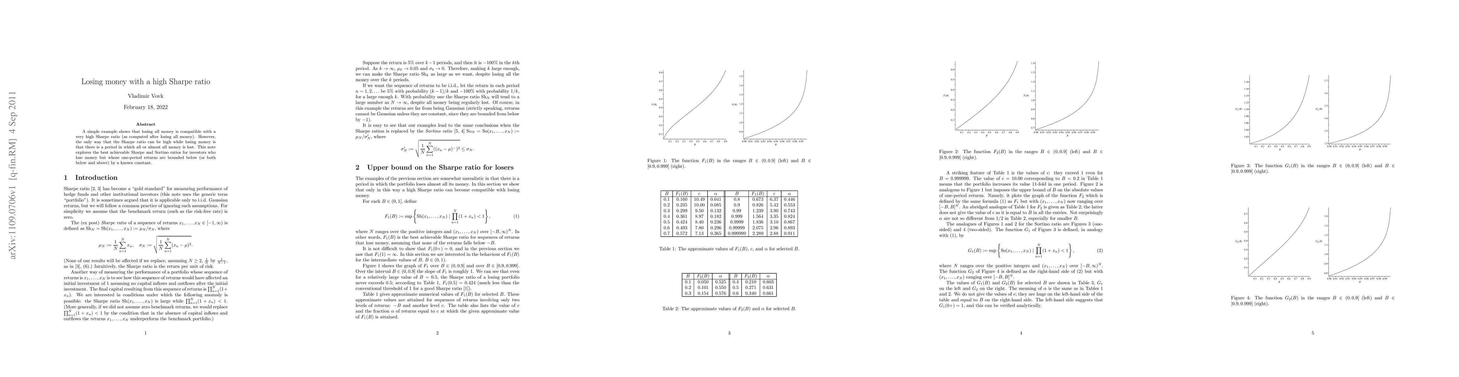 The paper introduces an upper bound function F1(B) for the Sharpe ratio of losing portfolios and examines the behavior of F1(B) for intermediate values of B.