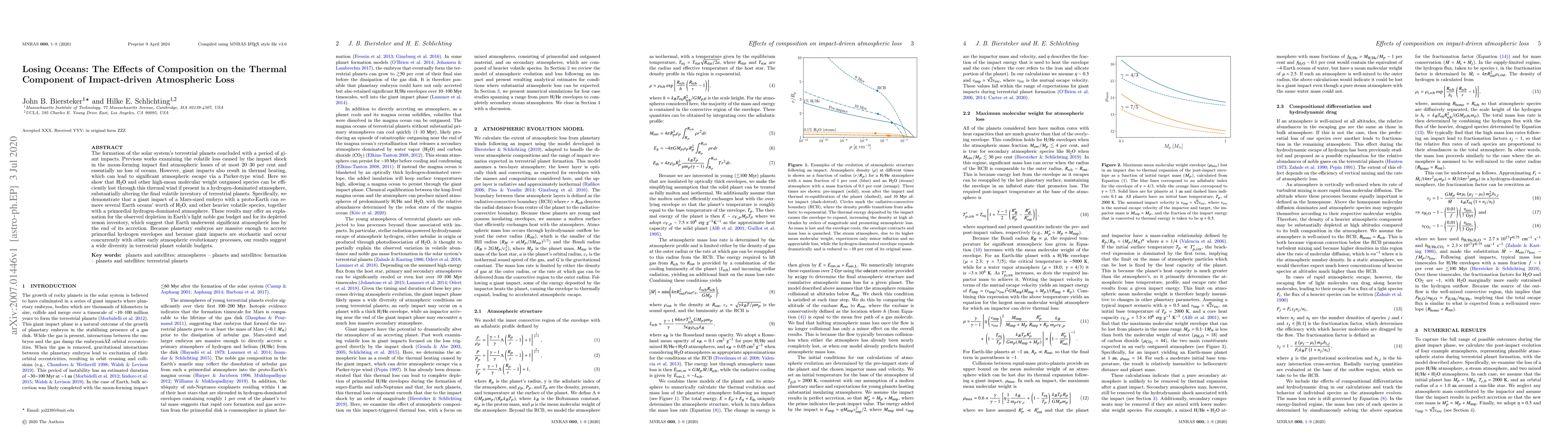 This paper investigates how giant impacts during the formation of terrestrial planets can lead to significant atmospheric and ocean loss through thermal winds, especially when high-mean molecular weight species like H2O are present in a hydrogen-dominated atmosphere. It concludes that such impacts can remove several Earth oceans' worth of volatiles, providing a potential explanation for Earth's depleted noble gas inventory.