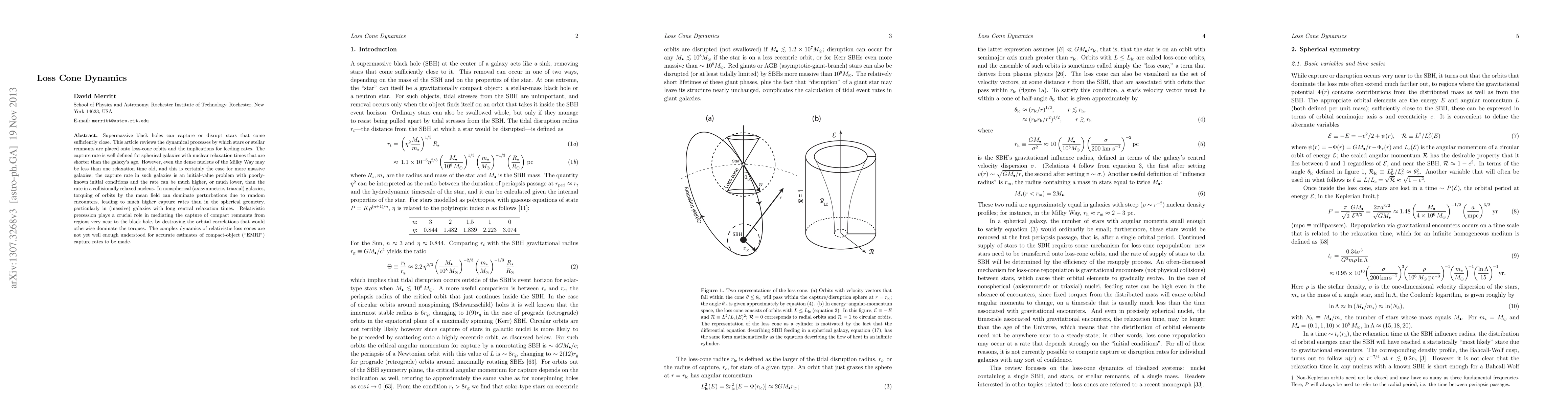 Supermassive black holes can capture or disrupt stars that come sufficiently close. This article reviews the dynamical processes by which stars or stellar remnants are placed onto loss-cone orbits and the implications for feeding rates. The capture rate is well defined for spherical galaxies with nuclear relaxation times that are shorter than the galaxy's age. However, even the dense nucleus of the Milky Way may be less than one relaxation time old, and this is certainly the case for more massive galaxies; the capture rate in such galaxies is an initial-value problem with poorly-known initial conditions and the rate can be much higher, or much lower, than the rate in a collisionally relaxed nucleus. In nonspherical (axisymmetric, triaxial) galaxies, torquing of orbits by the mean field can dominate perturbations due to random encounters, leading to much higher capture rates than in the spherical geometry, particularly in (massive) galaxies with long central relaxation times. Relativistic precession plays a crucial role in mediating the capture of compact remnants from regions very near to the black hole, by destroying the orbital correlations that would otherwise dominate the torques. The complex dynamics of relativistic loss cones are not yet well enough understood for accurate estimates of compact-object (EMRI) capture rates to be made.