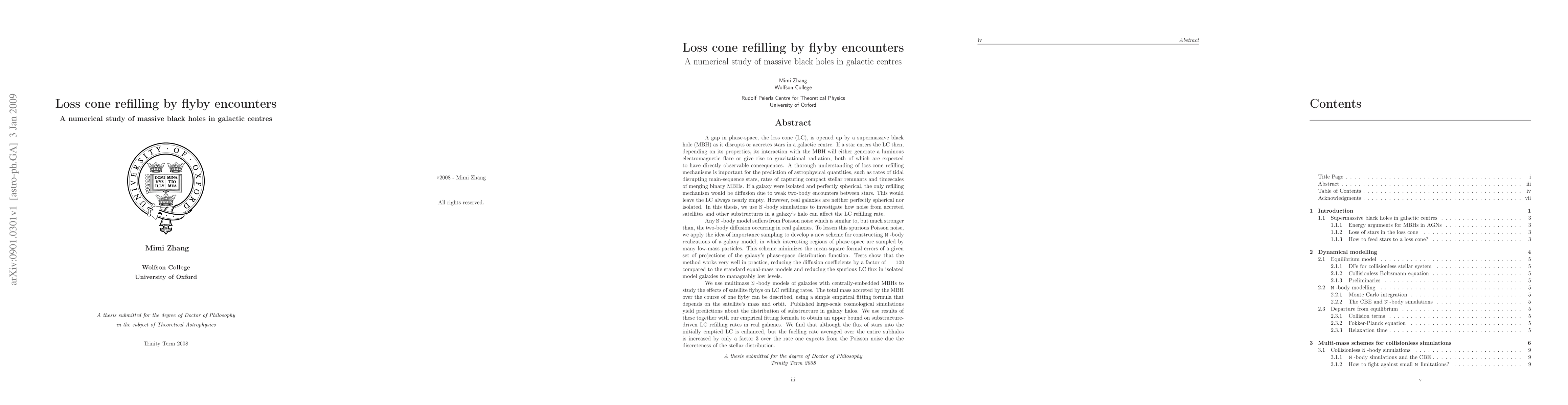 A gap in phase-space, the loss cone (LC), is opened up by a supermassive black hole (MBH) as it disrupts or accretes stars in a galactic centre. If a star enters the LC then, depending on its properties, its interaction with the MBH will either generate a luminous electromagnetic flare or give rise to gravitational radiation, both of which are expected to have directly observable consequences. A thorough understanding of loss-cone refilling mechanisms is important for the prediction of astrophysical quantities, such as rates of tidal disrupting main-sequence stars, rates of capturing compact stellar remnants and timescales of merging binary MBHs. In this thesis, we use N-body simulations to investigate how noise from accreted satellites and other substructures in a galaxy's halo can affect the LC refilling rate. Any N-body model suffers from Poisson noise which is similar to, but much stronger than, the two-body diffusion occurring in real galaxies. To lessen this spurious Poisson noise, we apply the idea of importance sampling to develop a new scheme for constructing N-body realizations of a galaxy model, in which interesting regions of phase-space are sampled by many low-mass particles. We use multimass N-body models of galaxies with centrally-embedded MBHs to study the effects of satellite flybys on LC refilling rates. We find that although the flux of stars into the initially emptied LC is enhanced, but the fuelling rate averaged over the entire subhalos is increased by only a factor 3 over the rate one expects from the Poisson noise due the discreteness of the stellar distribution.