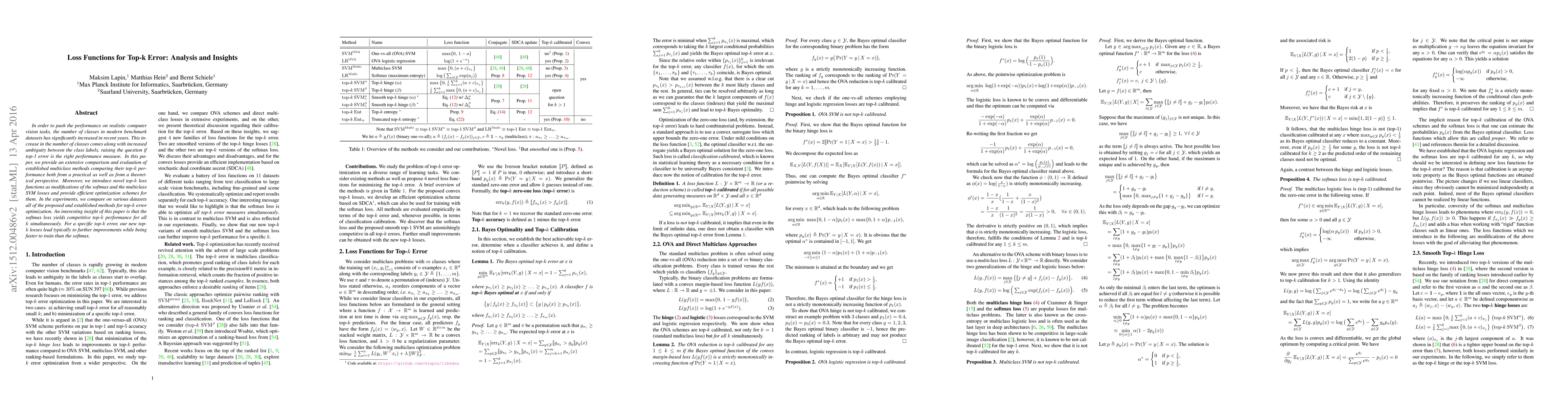 In order to push the performance on realistic computer vision tasks, the number of classes in modern benchmark datasets has significantly increased in recent years. This increase in the number of classes comes along with increased ambiguity between the class labels, raising the question if top-1 error is the right performance measure. In this paper, we provide an extensive comparison and evaluation of established multiclass methods comparing their top-k performance both from a practical as well as from a theoretical perspective. Moreover, we introduce novel top-k loss functions as modifications of the softmax and the multiclass SVM losses and provide efficient optimization schemes for them. In the experiments, we compare on various datasets all of the proposed and established methods for top-k error optimization. An interesting insight of this paper is that the softmax loss yields competitive top-k performance for all k simultaneously. For a specific top-k error, our new top-k losses lead typically to further improvements while being faster to train than the softmax.