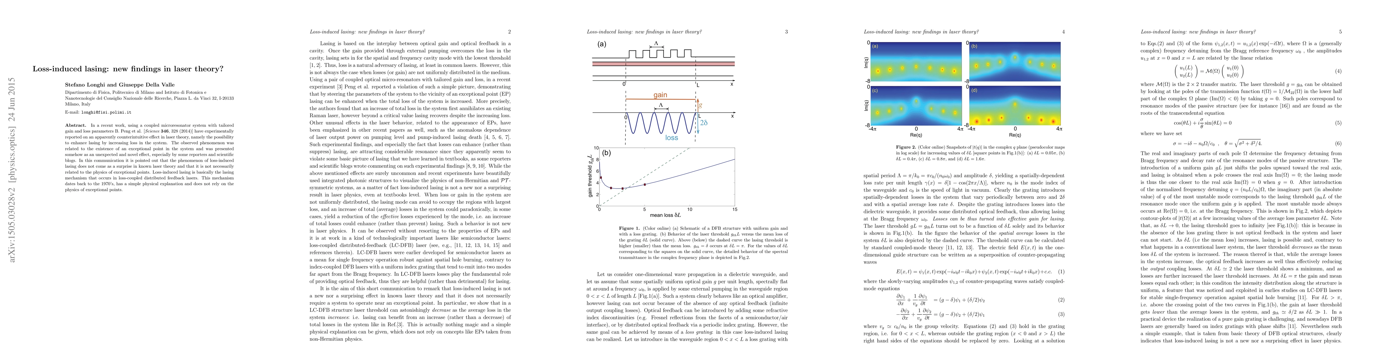 In a recent work, using a coupled microresonator system with tailored gain and loss parameters B. Peng et al. [Science 346, 328 (2014)] have experimentally reported on an apparently counterintuitive effect in laser theory, namely the possibility to enhance lasing by increasing loss in the system. The observed phenomenon was related to the existence of an exceptional point in the system and was presented somehow as an unexpected and novel effect, especially by some reporters and scientific blogs. In this communication it is pointed out that the phenomenon of loss-induced lasing does not come as a surprise in known laser theory and that it is not necessarily related to the physics of exceptional points. Loss-induced lasing is basically the lasing mechanism that occurs in loss-coupled distributed feedback lasers. This mechanism dates back to the 1970's, has a simple physical explanation and does not rely on the physics of exceptional points.
