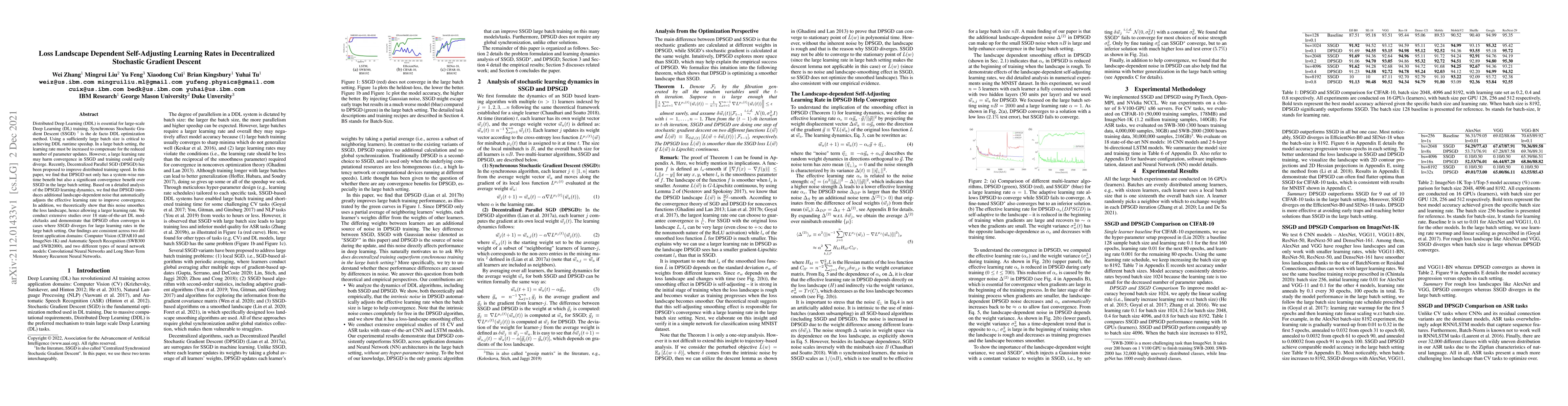 Researchers discovered that Decentralized Parallel SGD (DPSGD) improves convergence in large batch settings compared to SSGD, by introducing landscape-dependent noise that adjusts the effective learning rate and smooths the loss landscape.