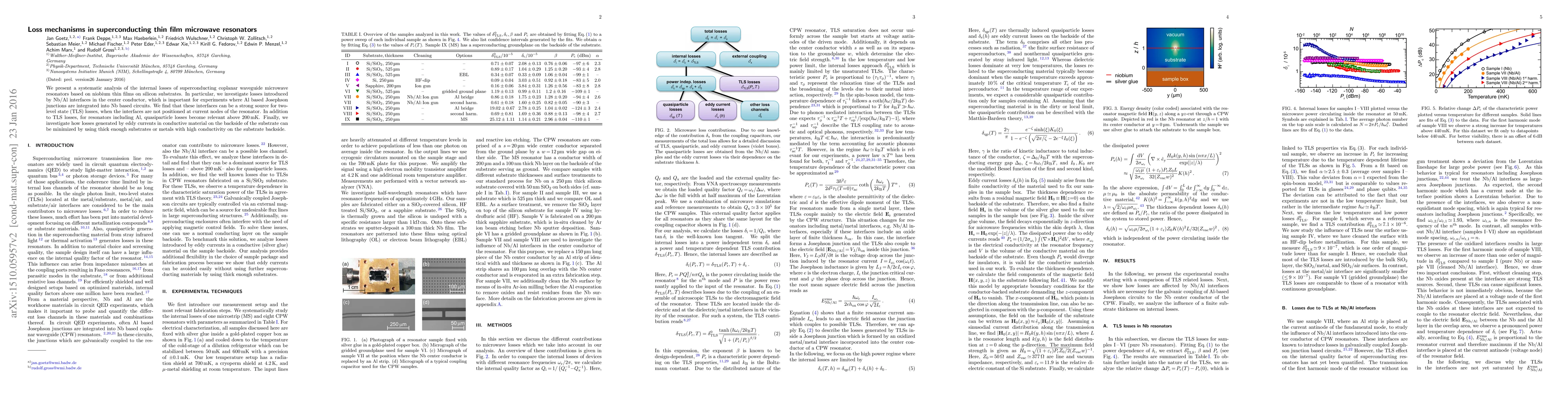 This research systematically analyzes the internal losses in superconducting microwave resonators made from niobium thin films on silicon substrates, focusing on Nb/Al interface-induced two-level state losses and quasiparticle losses in Al-containing resonators above 200 mK. It also examines minimizing eddy current losses by optimizing substrate thickness or material conductivity.
