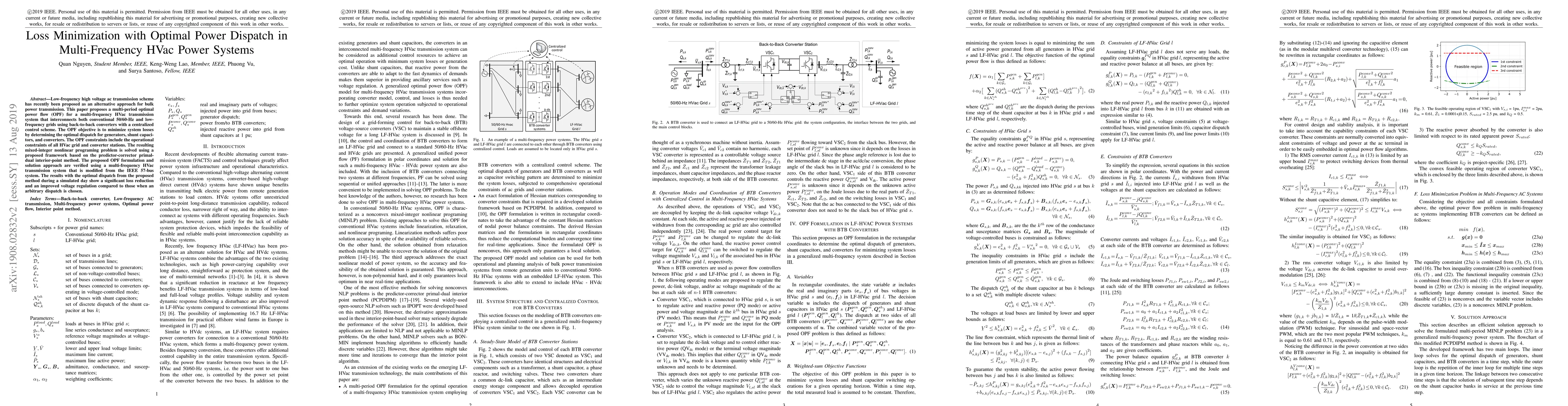 This paper proposes a multi-period optimal power flow method for a multi-frequency HVac transmission system, aiming to minimize system losses through optimal dispatch of generators and converters. The method is verified on a modified IEEE 57-bus system, showing significant loss reduction and improved voltage regulation compared to arbitrary dispatch.