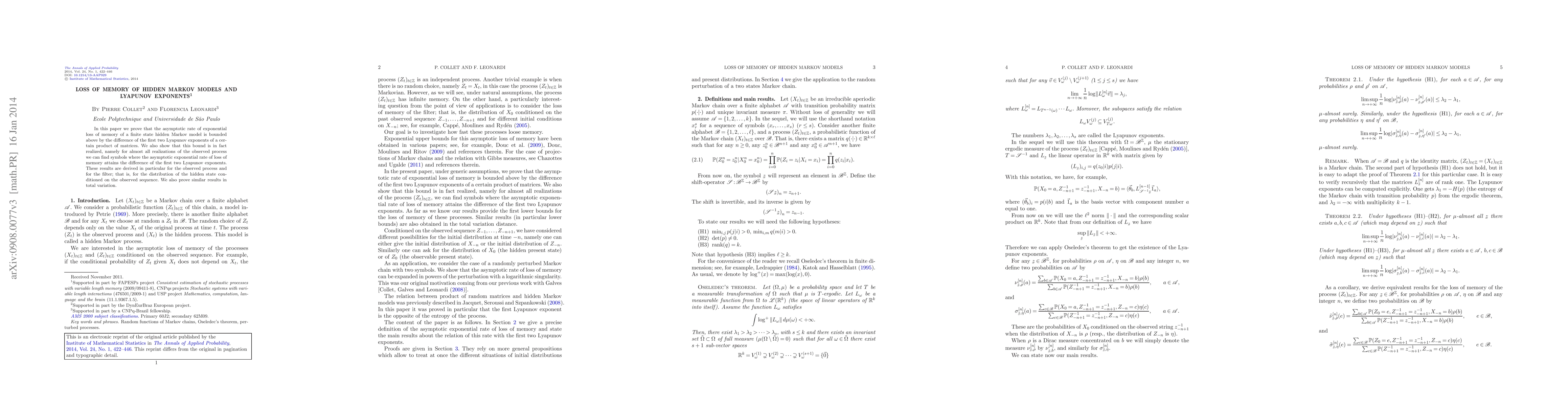 This paper demonstrates that the rate of memory loss in finite state hidden Markov models is bounded by the difference between the first two Lyapunov exponents of associated matrix products. It further proves that this bound is achievable for almost all realizations, particularly for both the observed process and the filtered hidden state distribution.
