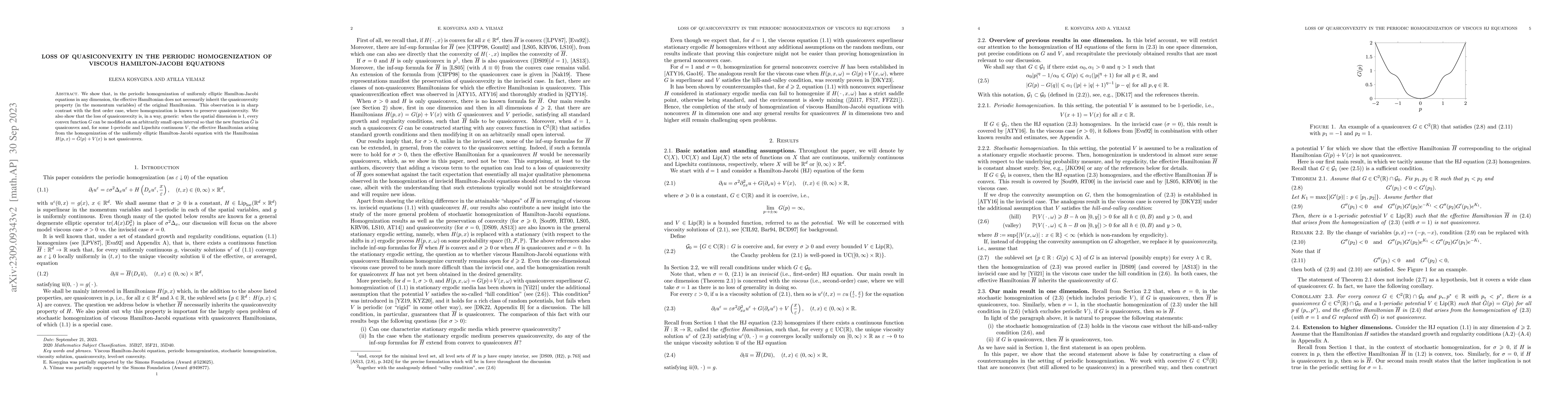 This paper demonstrates that periodic homogenization of uniformly elliptic Hamilton-Jacobi equations can lose quasiconvexity, contrasting with the first-order case where quasiconvexity is preserved. The authors also show that this loss is generic in dimension 1, where any convex function can be modified to yield a non-quasiconvex effective Hamiltonian after homogenization.