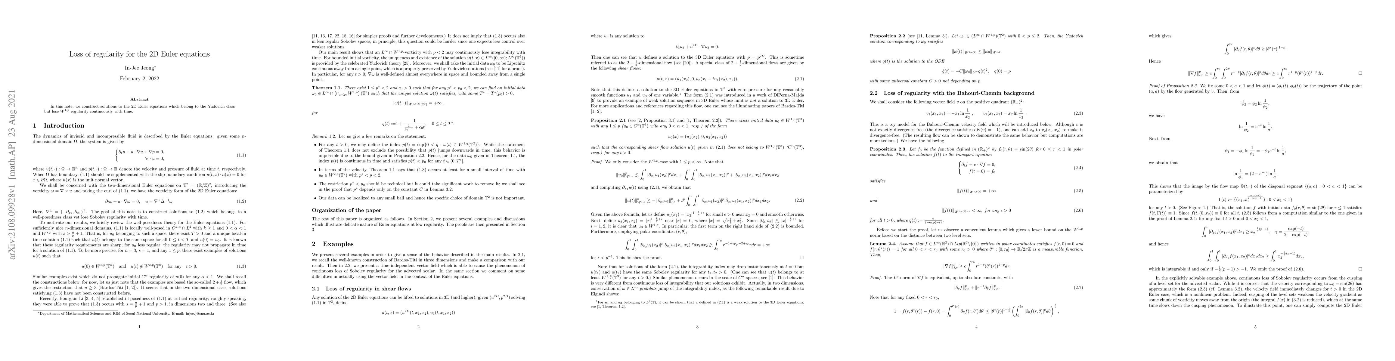 Researchers created 2D Euler equations solutions that lose $W^{1,p}$ regularity continuously with time, a significant finding for fluid dynamics.