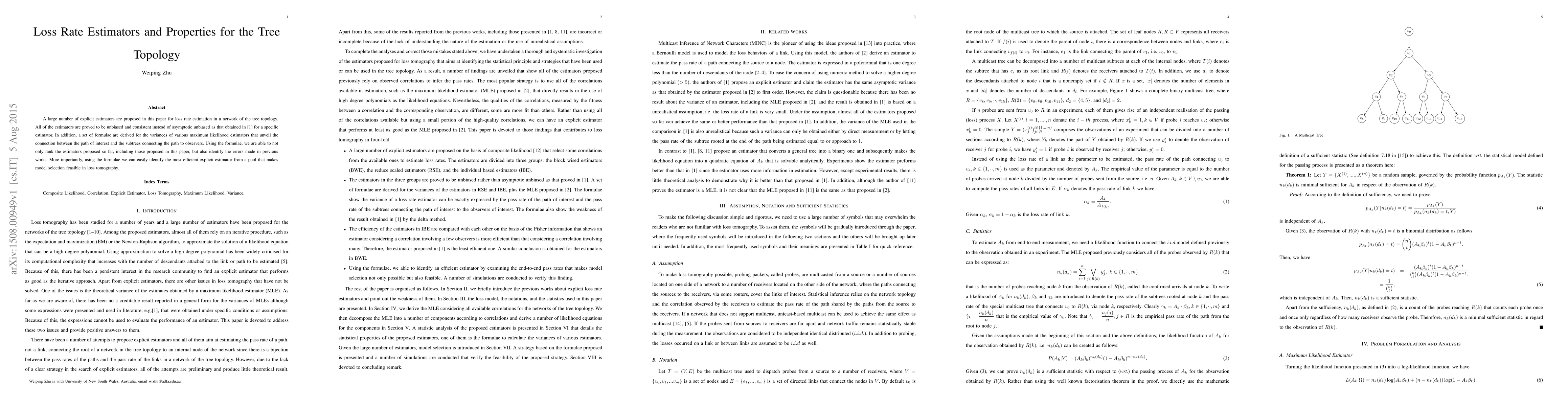 A large number of explicit estimators are proposed in this paper for loss rate estimation in a network of the tree topology. All of the estimators are proved to be unbiased and consistent instead of asymptotic unbiased as that obtained in [1] for a specific estimator. In addition, a set of formulae are derived for the variances of various maximum likelihood estimators that unveil the connection between the path of interest and the subtrees connecting the path to observers. Using the formulae, we are able to not only rank the estimators proposed so far, including those proposed in this paper, but also identify the errors made in previous works. More importantly, using the formulae we can easily identify the most efficient explicit estimator from a pool that makes model selection feasible in loss tomography