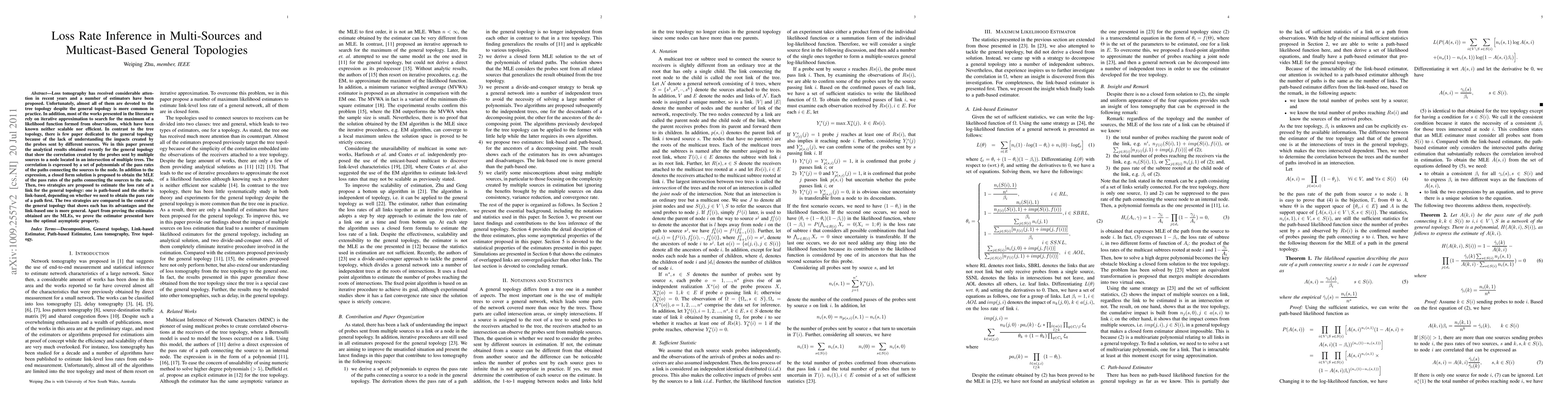 Loss tomography has received considerable attention in recent years and a number of estimators have been proposed. Unfortunately, almost all of them are devoted to the tree topology despite the general topology is more common in practice. In addition, most of the works presented in the literature rely on iterative approximation to search for the maximum of a likelihood function formed from observations, which have been known neither scalable nor efficient. In contrast to the tree topology, there is few paper dedicated to the general topology because of the lack of understanding the impacts created by the probes sent by different sources. We in this paper present the analytical results obtained recently for the general topology that show the correlation created by the probes sent by multiple sources to a node located in an intersection of multiple trees. The correlation is expressed by a set of polynomials of the pass rates of the paths connecting the sources to the node. In addition to the expression, a closed form solution is proposed to obtain the MLE of the pass rates of the paths connecting the sources to the node. Then, two strategies are proposed to estimate the loss rate of a link for the general topology: one is path-based and the other is link-based, depending on whether we need to obtain the pass rate of a path first. The two strategies are compared in the context of the general topology that shows each has its advantages and the link-based one is more general. Apart from proving the estimates obtained are the MLEs, we prove the estimator presented here has the optimal asymptotic property.