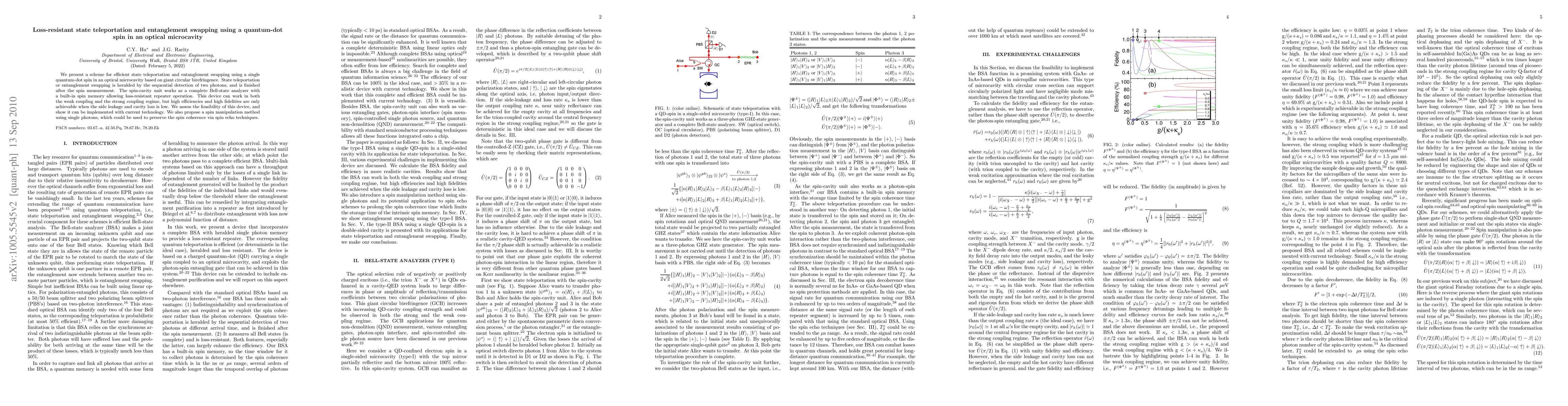 This paper proposes a method for efficient state teleportation and entanglement swapping using a quantum-dot spin in an optical microcavity, leveraging giant circular birefringence. The scheme is loss-resistant and feasible with current technology, utilizing spin echo techniques for coherence preservation.