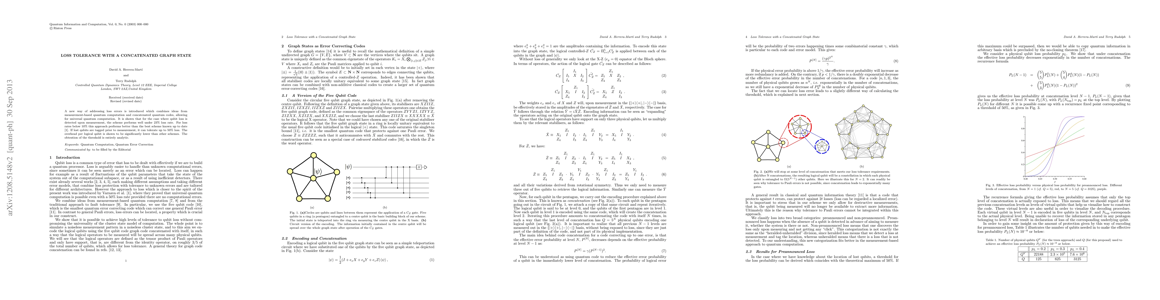 The paper proposes a concatenated graph state method that combines measurement-based quantum computation and quantum error correction, leading to a loss-tolerant quantum computation scheme.