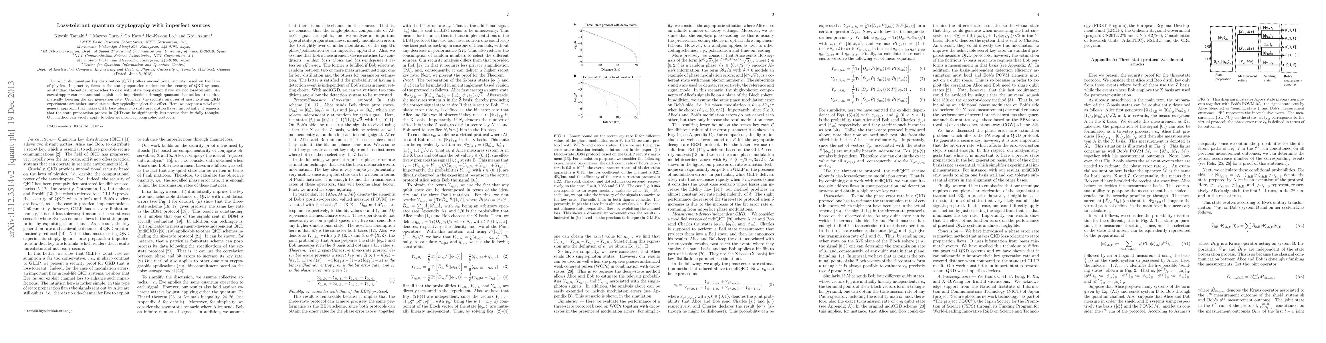 In principle, quantum key distribution (QKD) offers unconditional security based on the laws of physics. In practice, flaws in the state preparation undermine the security of QKD systems, as standard theoretical approaches to deal with state preparation flaws are not loss-tolerant. An eavesdropper can enhance and exploit such imperfections through quantum channel loss, thus dramatically lowering the key generation rate. Crucially, the security analyses of most existing QKD experiments are rather unrealistic as they typically neglect this effect. Here, we propose a novel and general approach that makes QKD loss-tolerant to state preparation flaws. Importantly, it suggests that the state preparation process in QKD can be significantly less precise than initially thought. Our method can widely apply to other quantum cryptographic protocols.