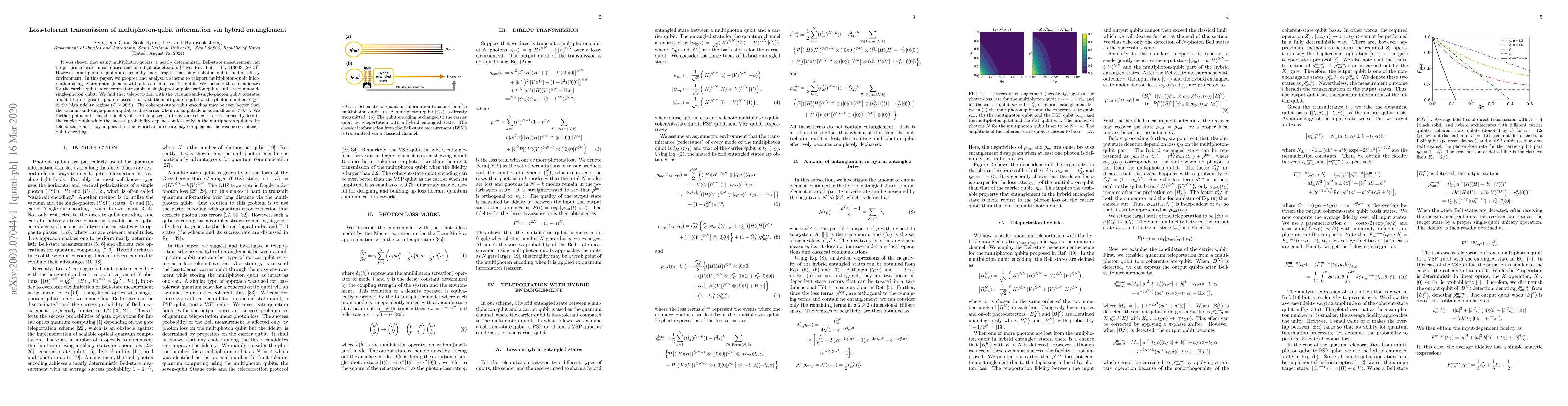 This paper proposes a scheme for loss-tolerant teleportation of multiphoton-qubit information using hybrid entanglement with a loss-tolerant carrier qubit, showing that the vacuum-and-single-photon qubit can tolerate greater photon losses compared to the multiphoton qubit. The study also finds that coherent-state qubit encoding can be superior under certain conditions.