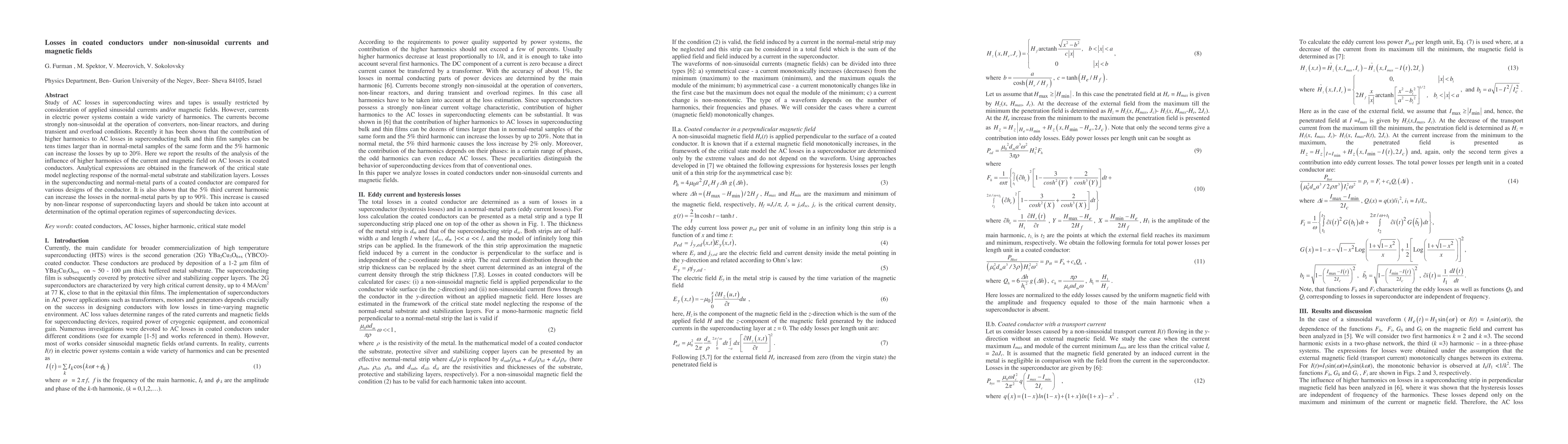 This paper investigates AC losses in coated conductors under non-sinusoidal currents and magnetic fields, revealing that higher harmonics significantly increase losses compared to sinusoidal conditions, especially in the normal-metal parts, which can experience up to a 90% increase due to the non-linear response of superconducting layers.