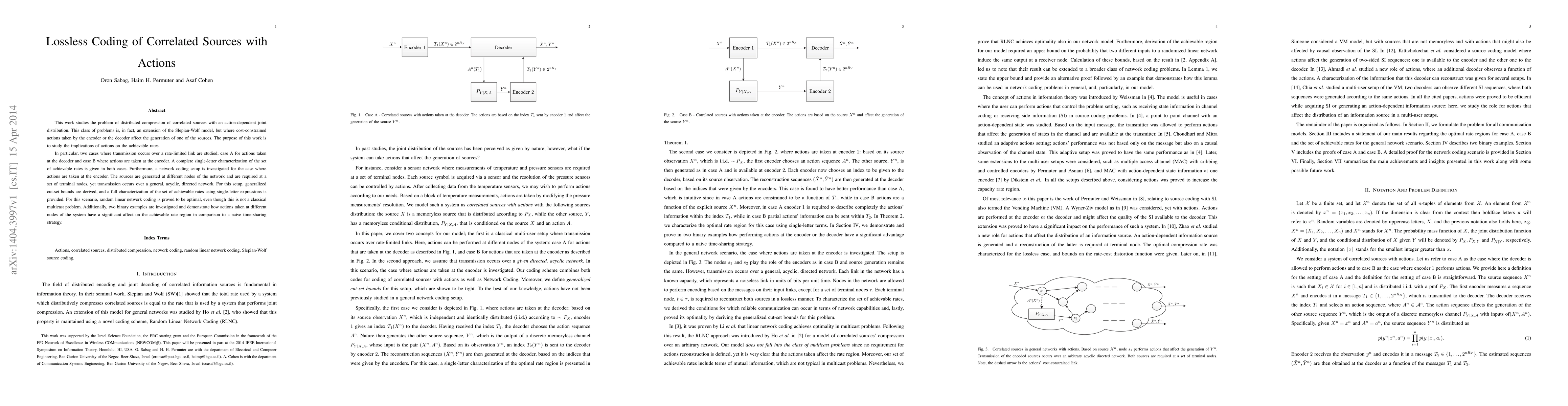 This work studies the problem of distributed compression of correlated sources with an action-dependent joint distribution. This class of problems is, in fact, an extension of the Slepian-Wolf model, but where cost-constrained actions taken by the encoder or the decoder affect the generation of one of the sources. The purpose of this work is to study the implications of actions on the achievable rates. In particular, two cases where transmission occurs over a rate-limited link are studied; case A for actions taken at the decoder and case B where actions are taken at the encoder. A complete single-letter characterization of the set of achievable rates is given in both cases. Furthermore, a network coding setup is investigated for the case where actions are taken at the encoder. The sources are generated at different nodes of the network and are required at a set of terminal nodes, yet transmission occurs over a general, acyclic, directed network. For this setup, generalized cut-set bounds are derived, and a full characterization of the set of achievable rates using single-letter expressions is provided. For this scenario, random linear network coding is proved to be optimal, even though this is not a classical multicast problem. Additionally, two binary examples are investigated and demonstrate how actions taken at different nodes of the system have a significant affect on the achievable rate region in comparison to a naive time-sharing strategy.