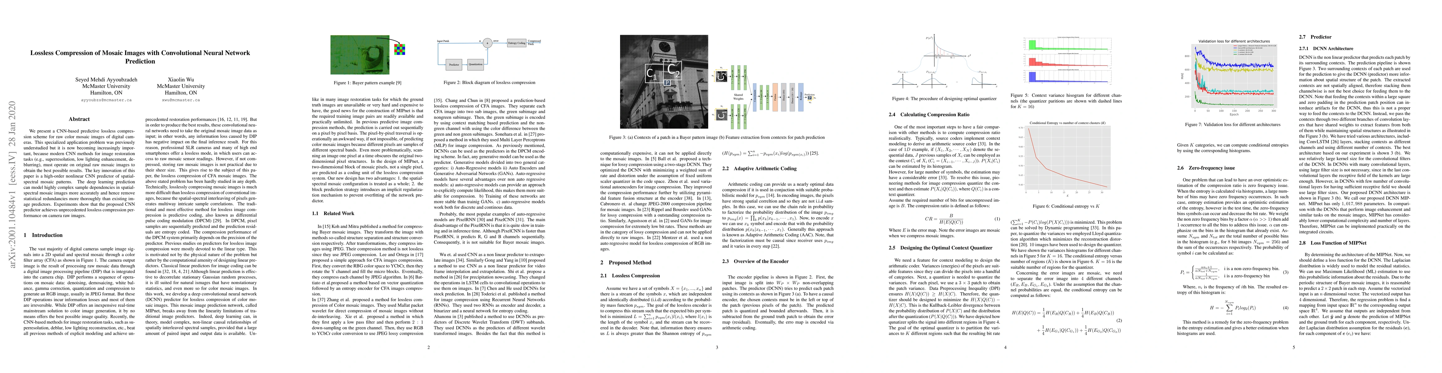 This research introduces a convolutional neural network (CNN)-based lossless compression method for raw color mosaic images, which is crucial for modern image restoration tasks. The proposed high-order nonlinear CNN predictor effectively models complex spatial-spectral patterns, achieving superior lossless compression performance compared to existing methods. For more details, please refer to the original paper.