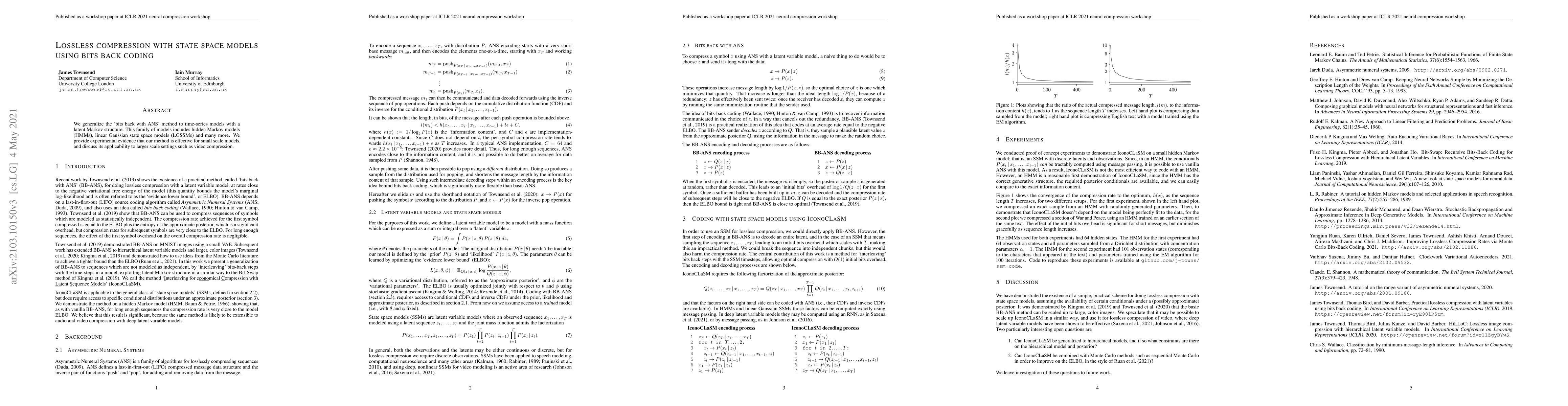 This paper generalizes the 'bits back with ANS' method to compress time-series data using state space models with latent Markov structures, demonstrating effectiveness for small scale models and potential for larger scale applications like video compression.