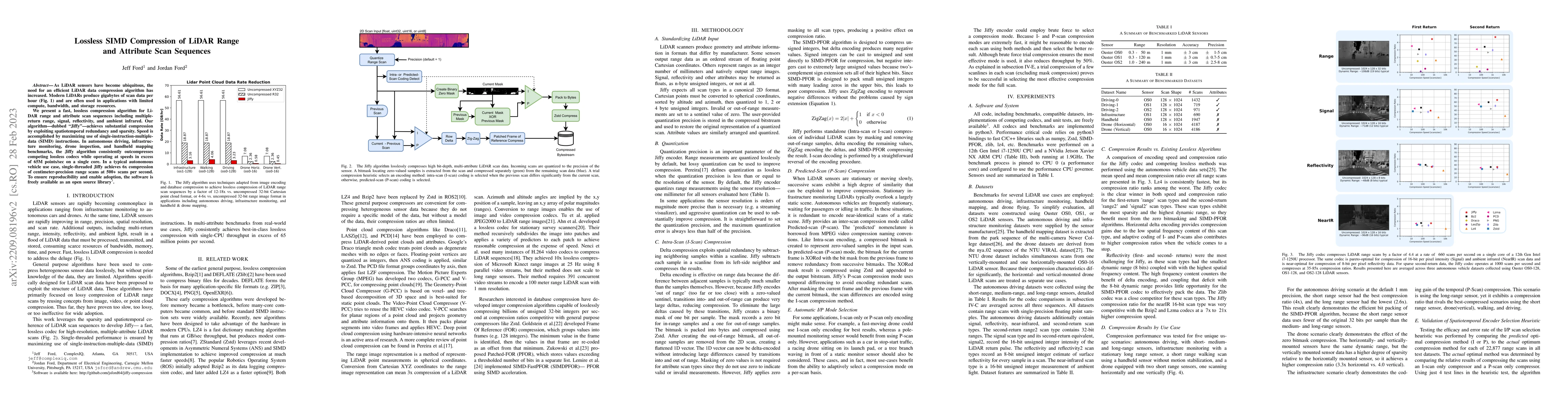 This paper introduces "Jiffy," a fast, lossless compression algorithm for LiDAR data, leveraging SIMD instructions to exploit spatiotemporal redundancy and sparsity. The algorithm achieves superior compression rates and speeds, outperforming other lossless codecs, and is available as an open-source library for adoption in applications like autonomous driving and drone inspection.