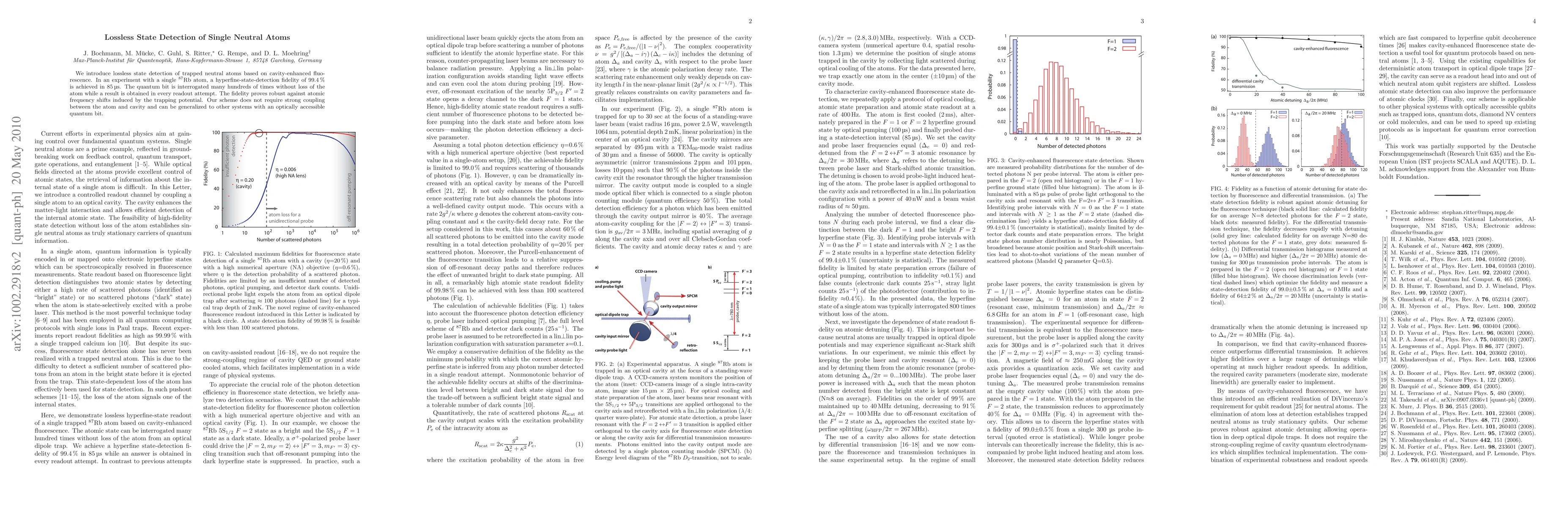 This research presents a method for lossless detection of the quantum state of a single neutral atom using cavity-enhanced fluorescence, achieving 99.4% fidelity in 85 microseconds. The technique is robust against frequency shifts and does not require strong coupling between the atom and cavity, making it adaptable to various systems.
